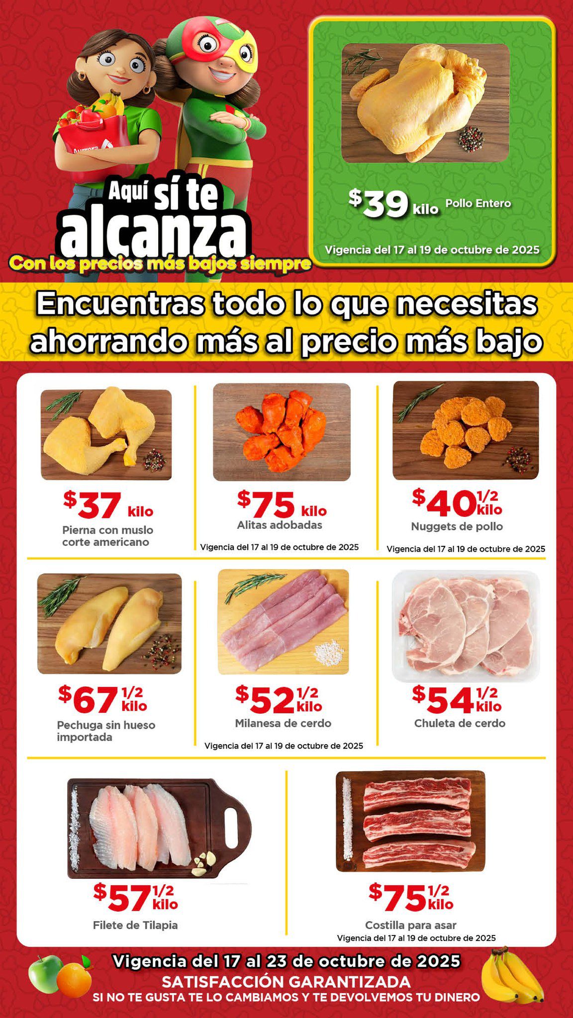 Sus ofertas en Frutas, Verduras y Carnes son éstas: