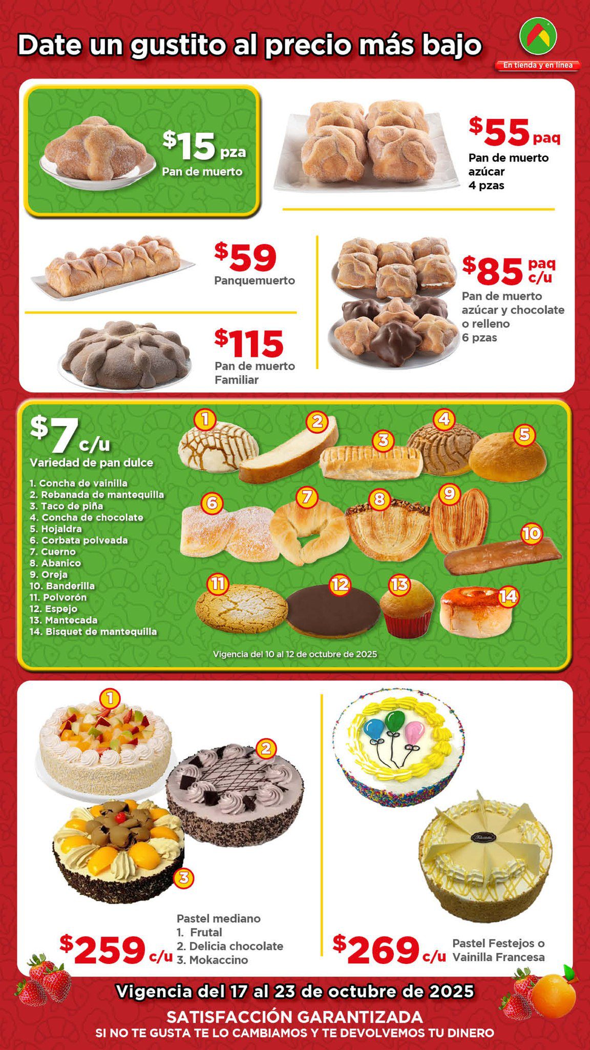 Estoy viendo el folleto “El Tianguis de frutas y verduras, Precio Bodega” de las tiendas de autoservicio Bodega Aurrera, que contiene sus ofertas válidas del 17 al 23 de octubre de 2025, en el que encontrarás Precios especiales; las ofertas aplican en artículos seleccionados, son válidas en su tienda en línea bodegaaurrera.com.mx y en sus sucursales físicas.