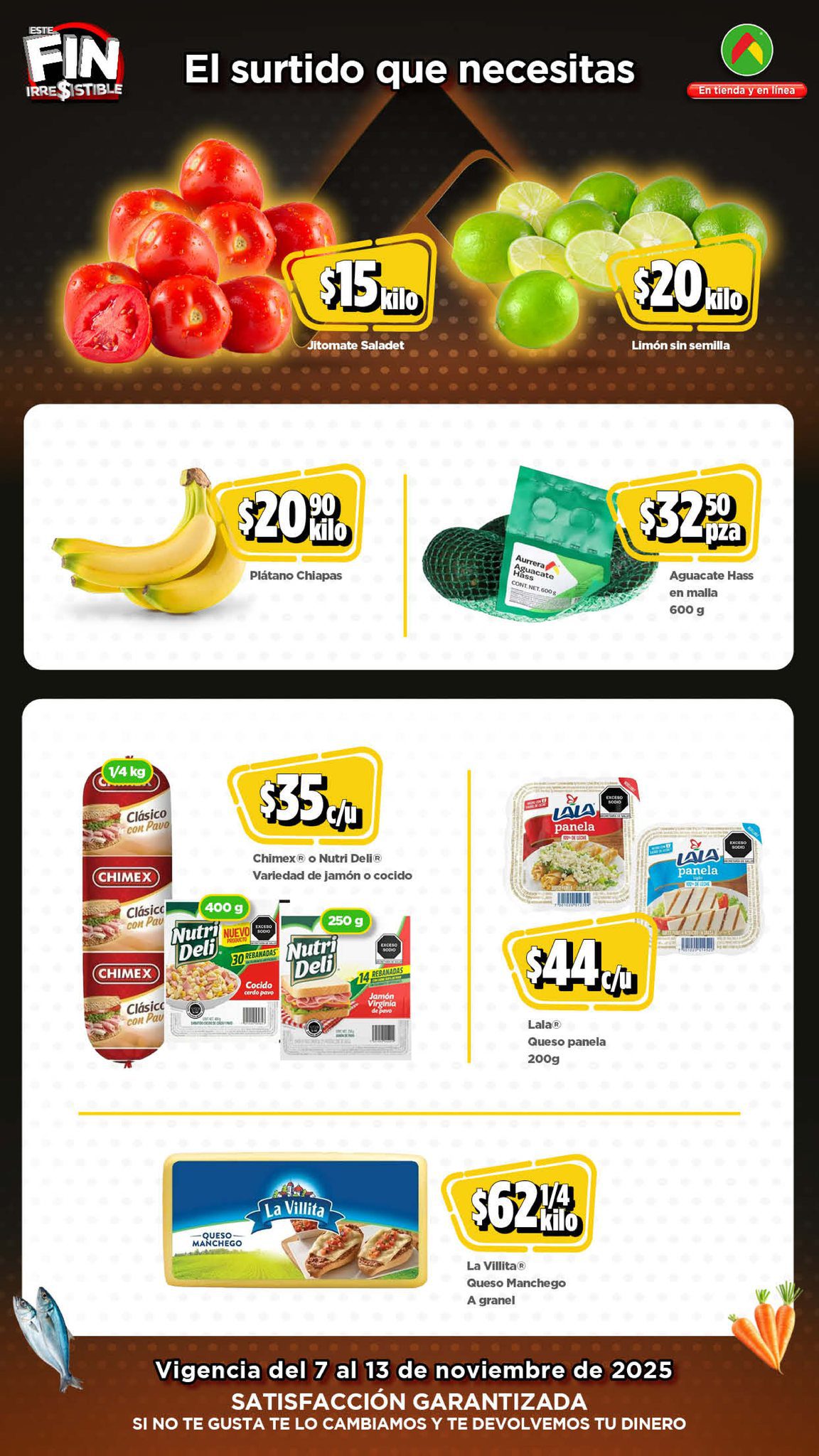 Estoy viendo el folleto “El Tianguis de frutas y verduras, Precio Bodega” de las tiendas de autoservicio Bodega Aurrera, que contiene sus ofertas válidas del 07 al 13 de noviembre de 2025, en el que encontrarás Combos, Precios especiales; las ofertas aplican en artículos seleccionados, son válidas en su tienda en línea bodegaaurrera.com.mx y en sus sucursales físicas.