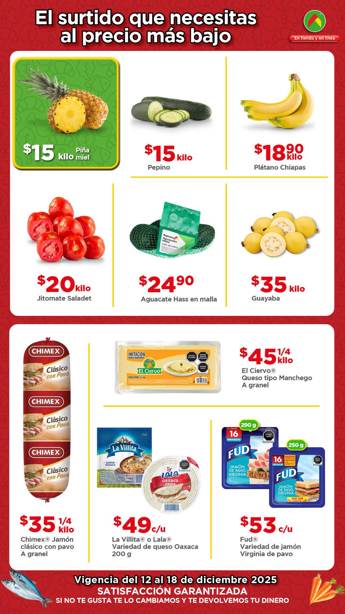 Estoy viendo el folleto “El Tianguis de frutas y verduras, Precio Bodega” de las tiendas de autoservicio Bodega Aurrera, que contiene sus ofertas válidas del 12 al 18 de diciembre de 2025, en el que encontrarás Precios especiales; las ofertas aplican en artículos seleccionados, son válidas en su tienda en línea bodegaaurrera.com.mx y en sus sucursales físicas.