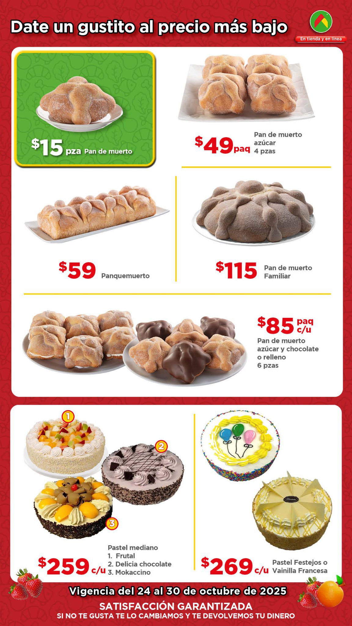 Estoy viendo el folleto “El Tianguis de frutas y verduras, Precio Bodega” de las tiendas de autoservicio Bodega Aurrera, que contiene sus ofertas válidas del 24 al 30 de octubre de 2025, en el que encontrarás Precios especiales; las ofertas aplican en artículos seleccionados, son válidas en su tienda en línea bodegaaurrera.com.mx y en sus sucursales físicas.