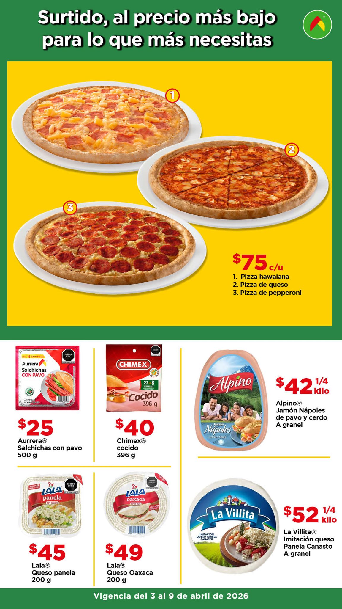 Estoy viendo el folleto “El Tianguis de frutas y verduras, Precio Bodega” de las tiendas de autoservicio Bodega Aurrera, que contiene sus ofertas válidas del 03 al 09 de abril de 2026, en el que encontrarás Precios especiales; las ofertas aplican en artículos seleccionados, son válidas en su tienda en línea bodegaaurrera.com.mx y en sus sucursales físicas.
