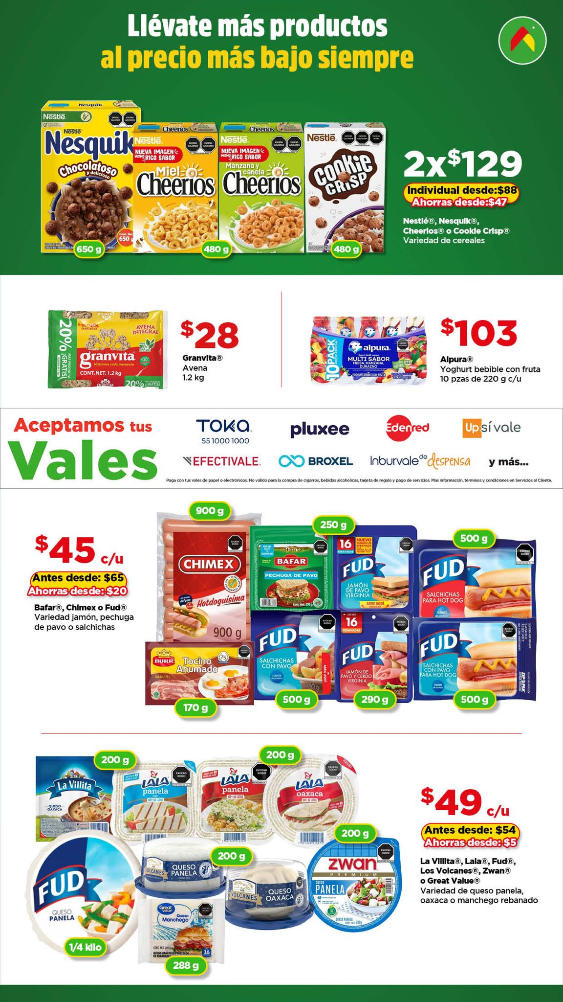 Acabo de ver el folleto Aquí si te Alcanza, Precios más Bajos siempre de las tiendas de autoservicio Bodega Aurrera, que contiene sus ofertas válidas del 14 de octubre al 19 de noviembre de 2025, en el que encontrarás Precios especiales (con productos desde $5.00), Ahorros especiales en la compra de determinadas unidades y hasta un 20% de Bonificación en productos participantes pagando con Cashi; las ofertas aplican en artículos seleccionados, son válidas en su tienda en línea bodegaaurrera.com.mx y en sus sucursales físicas y éste es su folleto: