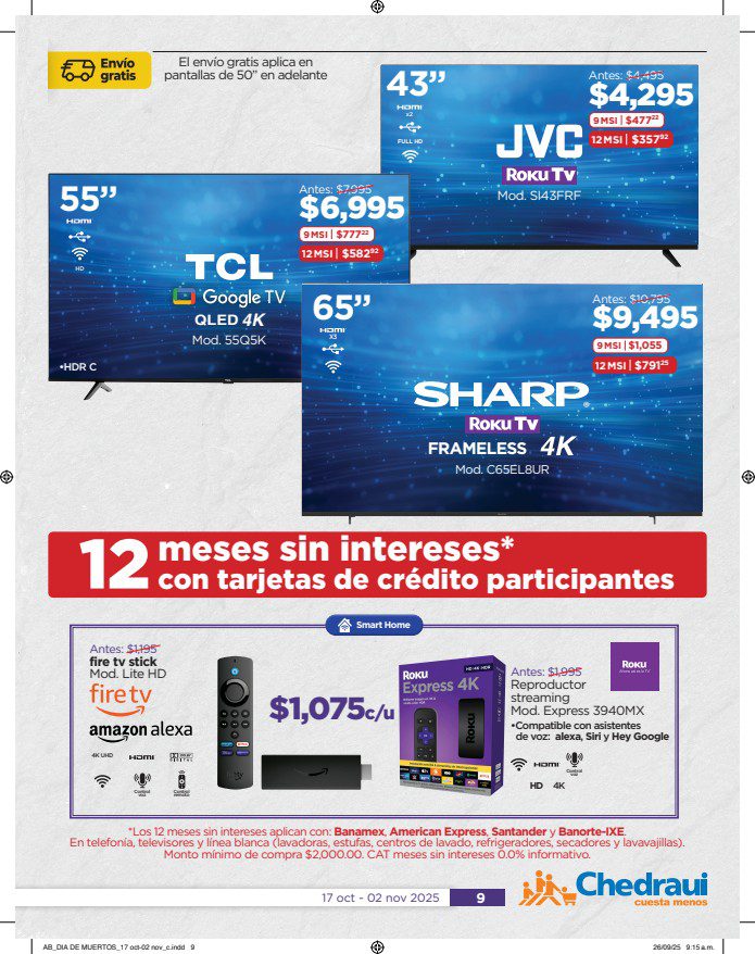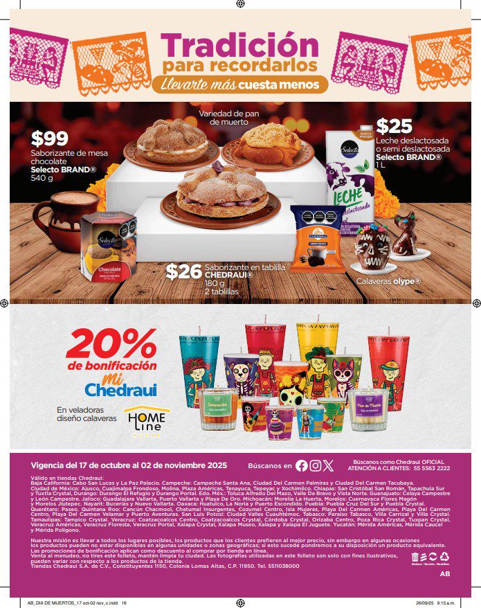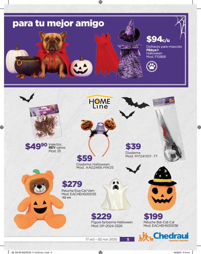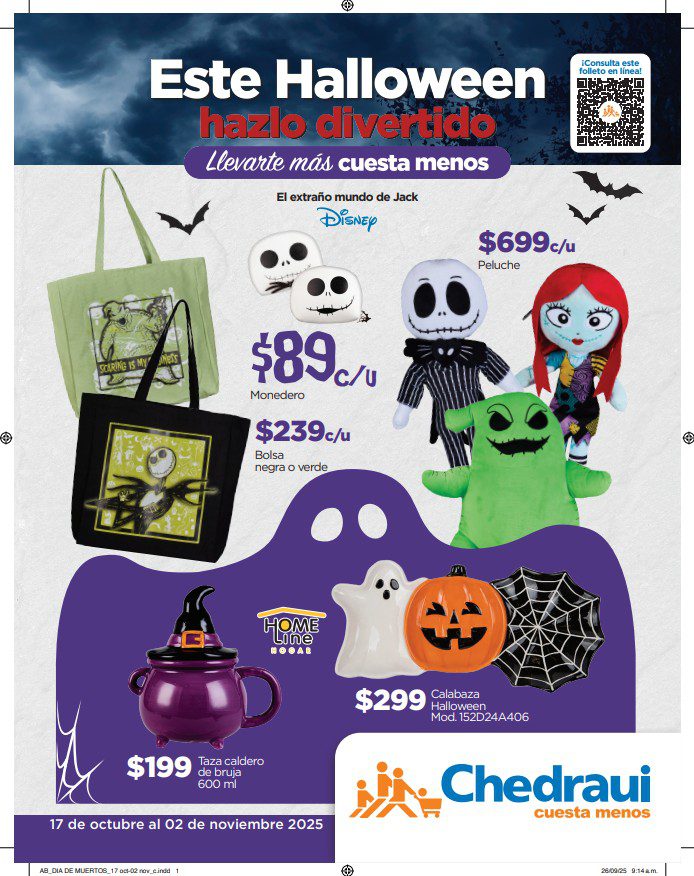 Acabo de ver que Chedraui publicó su folleto Este Halloween hazlo Divertido, Llevarte más Cuesta Menos, que contiene sus ofertas válidas del 17 de octubre al 02 de noviembre de 2025, y en el que encontrarás hasta un 20% de bonificación en tu Monedero MiChedraui, Precios especiales y hasta 12 Meses sin intereses; las ofertas son válidas en productos seleccionados y aplican en su tienda en línea chedraui.com.mx y en sus sucursales físicas.
