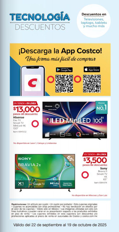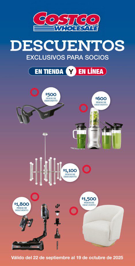 Ya salió la Cuponera Descuentos Exclusivos para Socios de Costco, que contiene sus ofertas vigentes del 22 de septiembre al 19 de octubre de 2025 y válidas en su tienda en línea costco.com.mx, en su App (costco-app) y en sus sucursales físicas; en la que podrás obtener hasta $20,000.00 de ahorro y hasta un 30% de descuento en artículos seleccionados, deberás consultar las marcas, productos y presentaciones que participan.