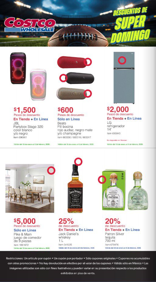 Ya salió la Cuponera especial Descuentos de Super Domingo de Costco, que contiene sus ofertas vigentes del 18 de enero al 08 de febrero de 2026, las ofertas son válidas en su tienda en línea costco.com.mx, en su App (costco-app) y en sus sucursales físicas; en la que encontrarás hasta $15,000.00 de ahorro y hasta un 30% de descuento en artículos seleccionados, deberás consultar las marcas, productos y presentaciones que participan.