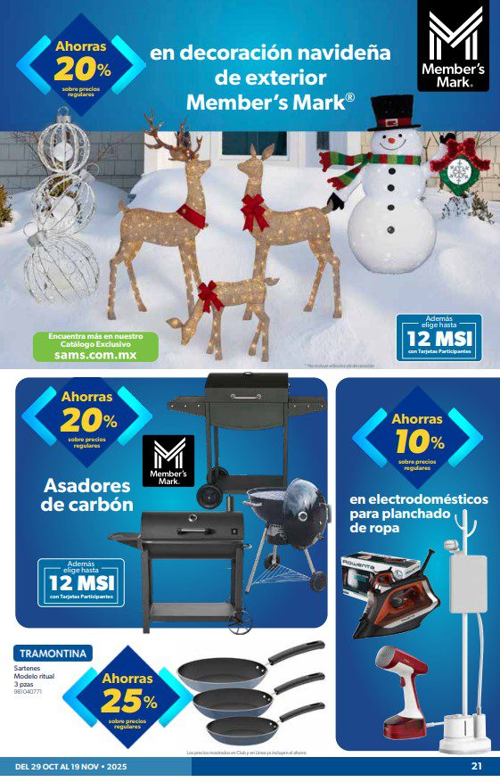 Ya salió la nueva Cuponera Precios Ganadores Todo el Mes de Sam’s Club, que contiene sus ofertas que estarán vigentes del 29 de octubre al 19 de noviembre de 2025, en la que encontrarás Nuevos Precios Bajos, desde un 30% de descuento en Vinos y Licores seleccionados, hasta un 45% de ahorro sobre Precios vigentes, Ahorros exclusivos de hasta un 30% en su sitio web y en su App, Ahorros especiales en la compra de determinadas unidades, Precios especiales y hasta 12 Meses sin intereses; las ofertas aplican en productos seleccionados de todos sus departamentos, la cuponera es válida en su tienda en línea sams.com.mx, en su App (sams.com.mx/segment/scan-and-go) y en sus Clubes físicos.