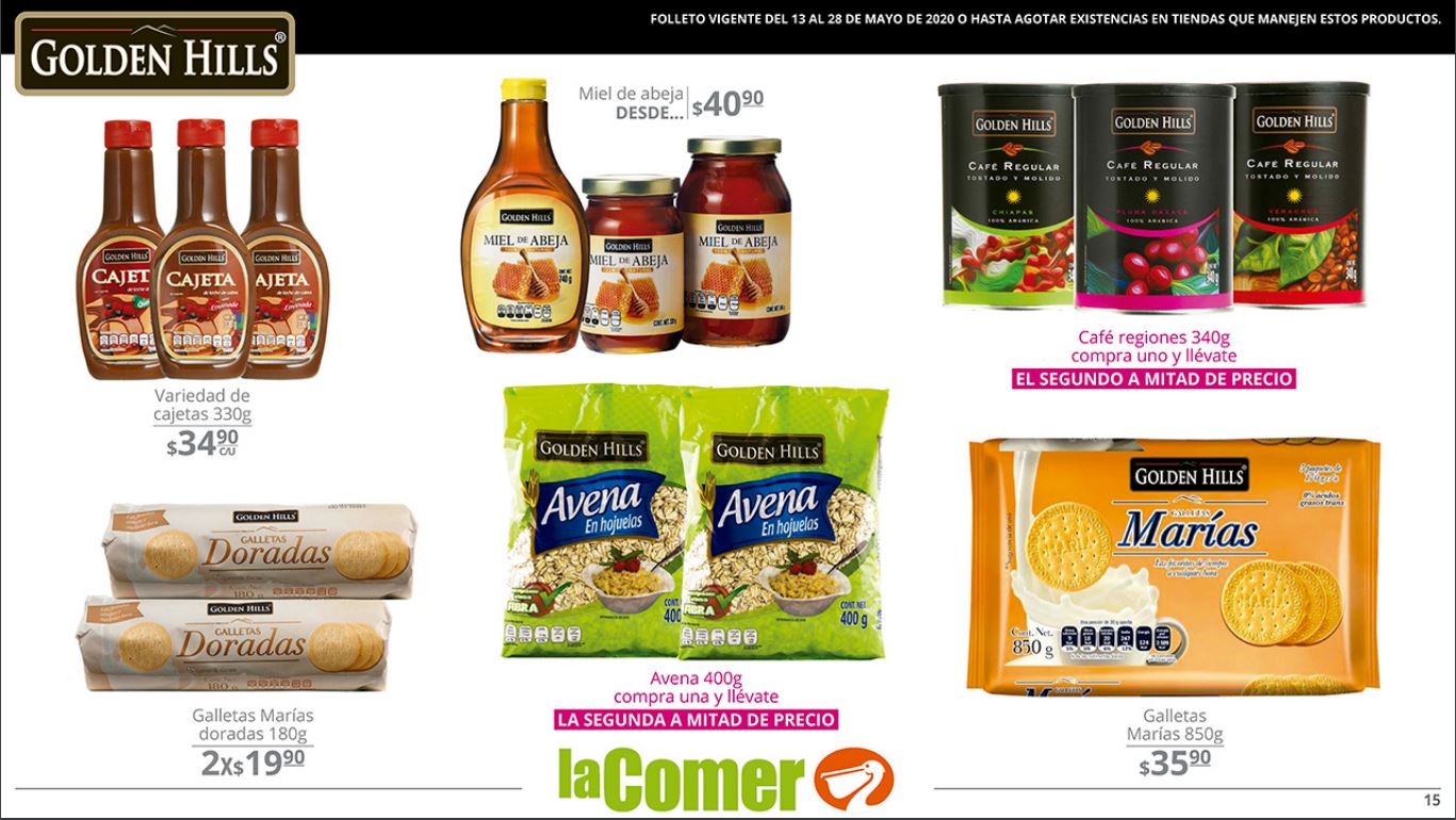 La Comer ya publicó su folleto de promociones válidas del 13 al 28 de mayo de 2020, en el que encontrarás ofertas como el Segundo a Mitad de Precio, Bonificaciones en tu Monedero Naranja, Precios especiales y por supuesto, ofertas especiales en productos de su marca Golden Hills; las ligas de su tienda en línea son http://vasalsuperoalacomer.com/comer/ y https://www.lacomer.com.mx/lacomer. Te comparto el folleto completo: