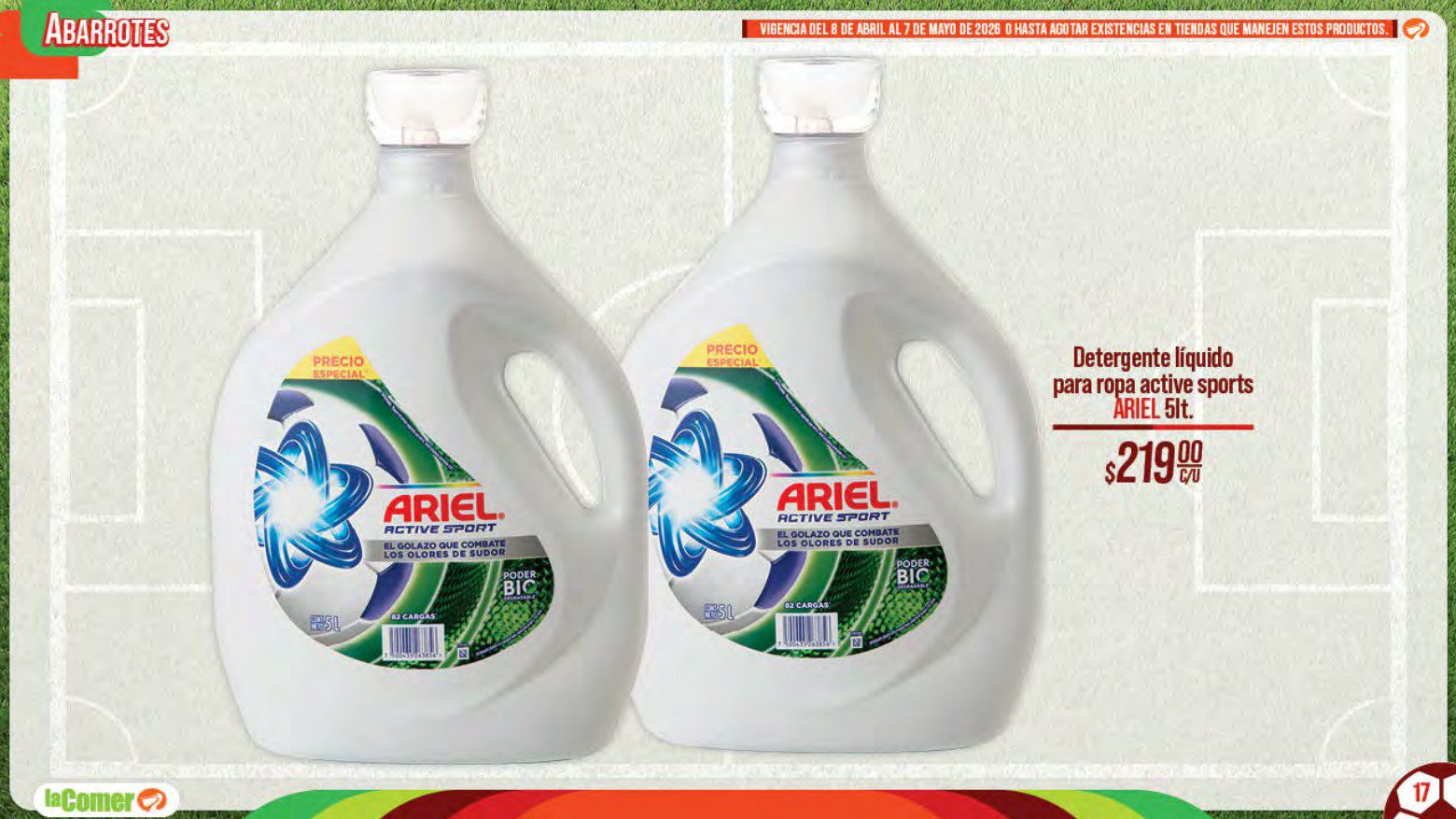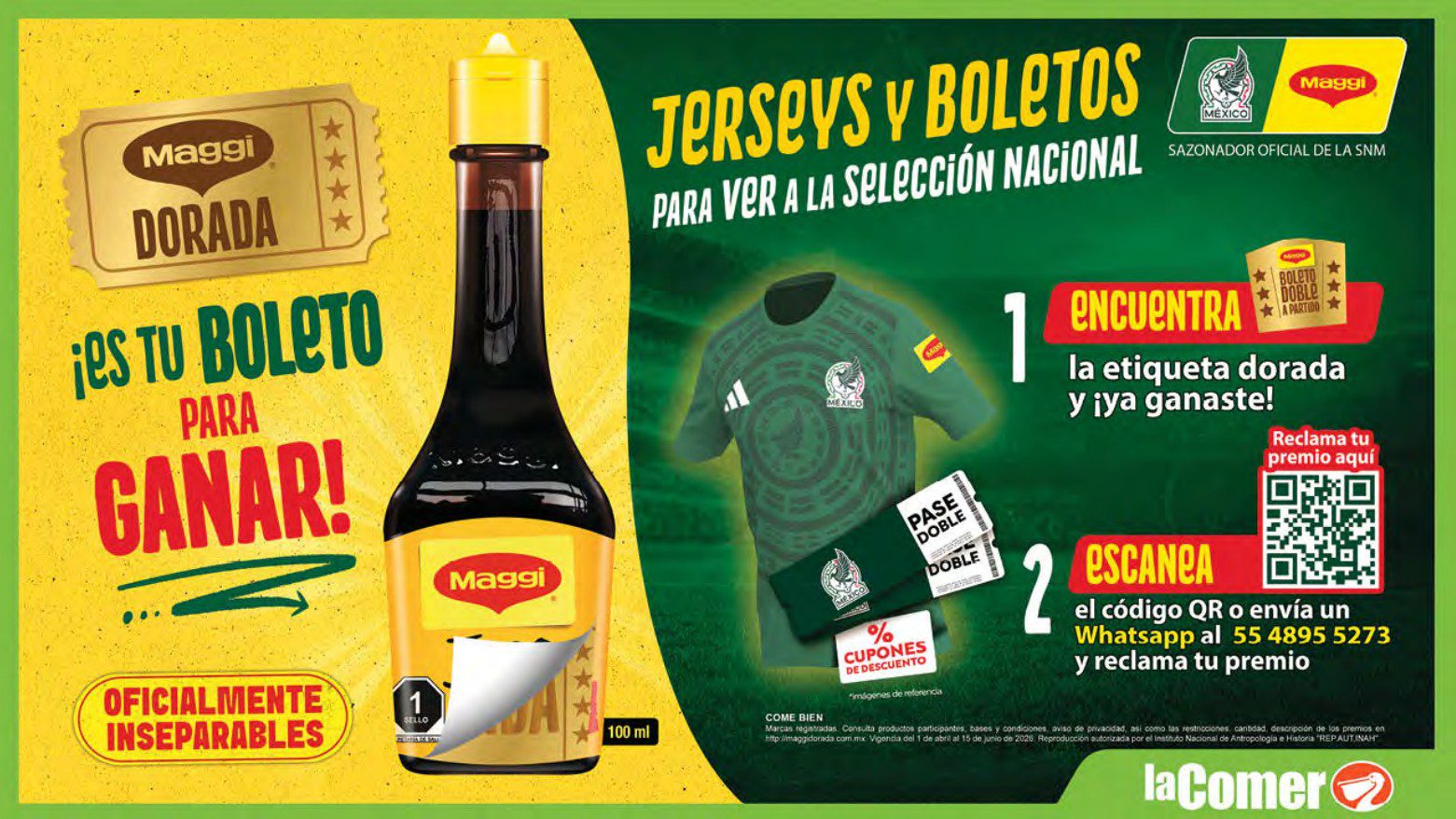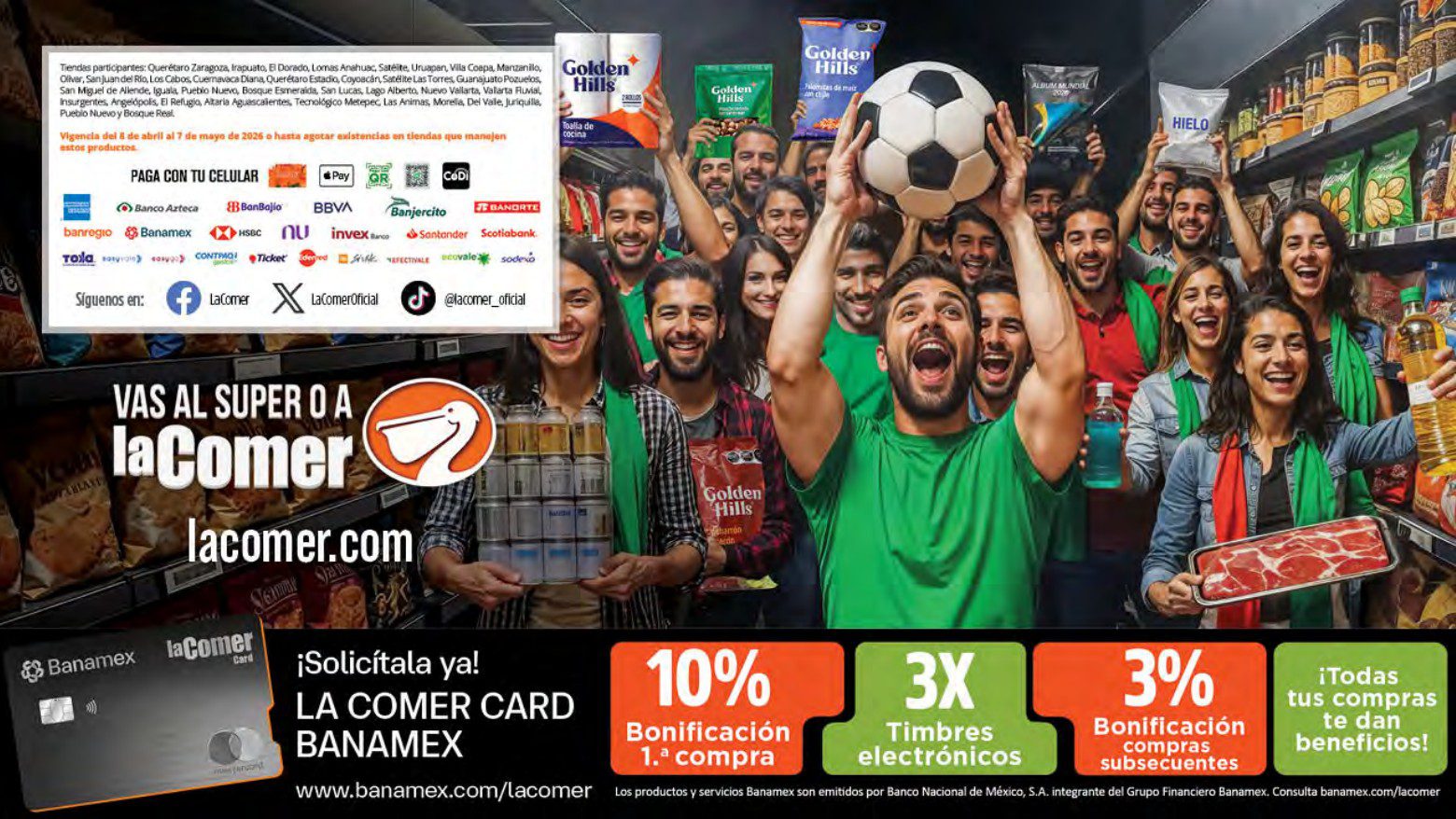 Te comparto el folleto por el Mundial 2026 de La Comer y Fresko, que contiene sus ofertas válidas del 08 de abril al 07 de mayo de 2026 o hasta agotar existencias y en el que encontrarás que, en la compra de 1 te llevas el Segundo a Mitad de precio, Descuentos especiales en compras por determinadas cantidades, Producto Gratis en la compra de productos participantes y Precios especiales en productos seleccionados; las ofertas son válidas en su tienda en línea: lacomer.com.mx y en sus sucursales físicas y este es su folleto: