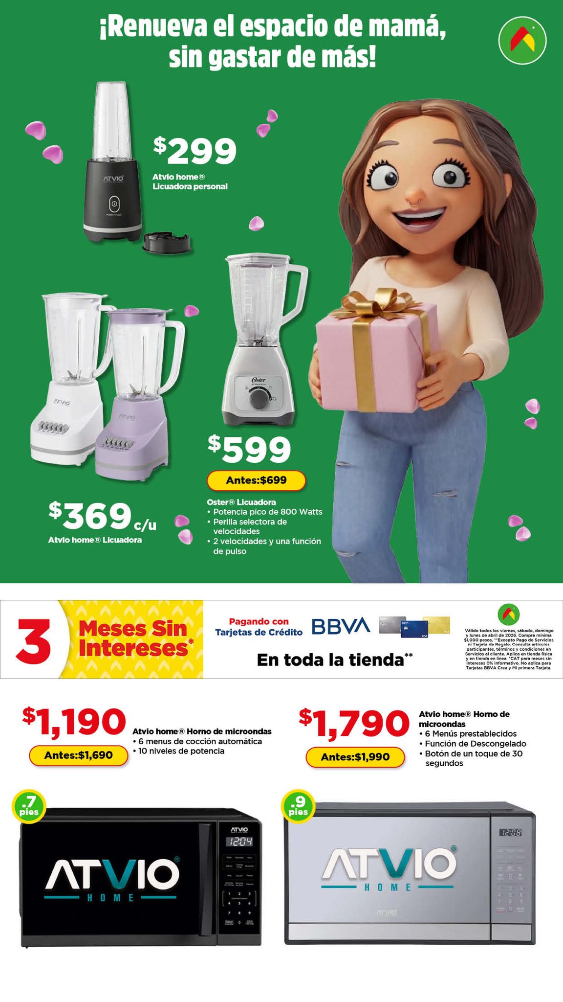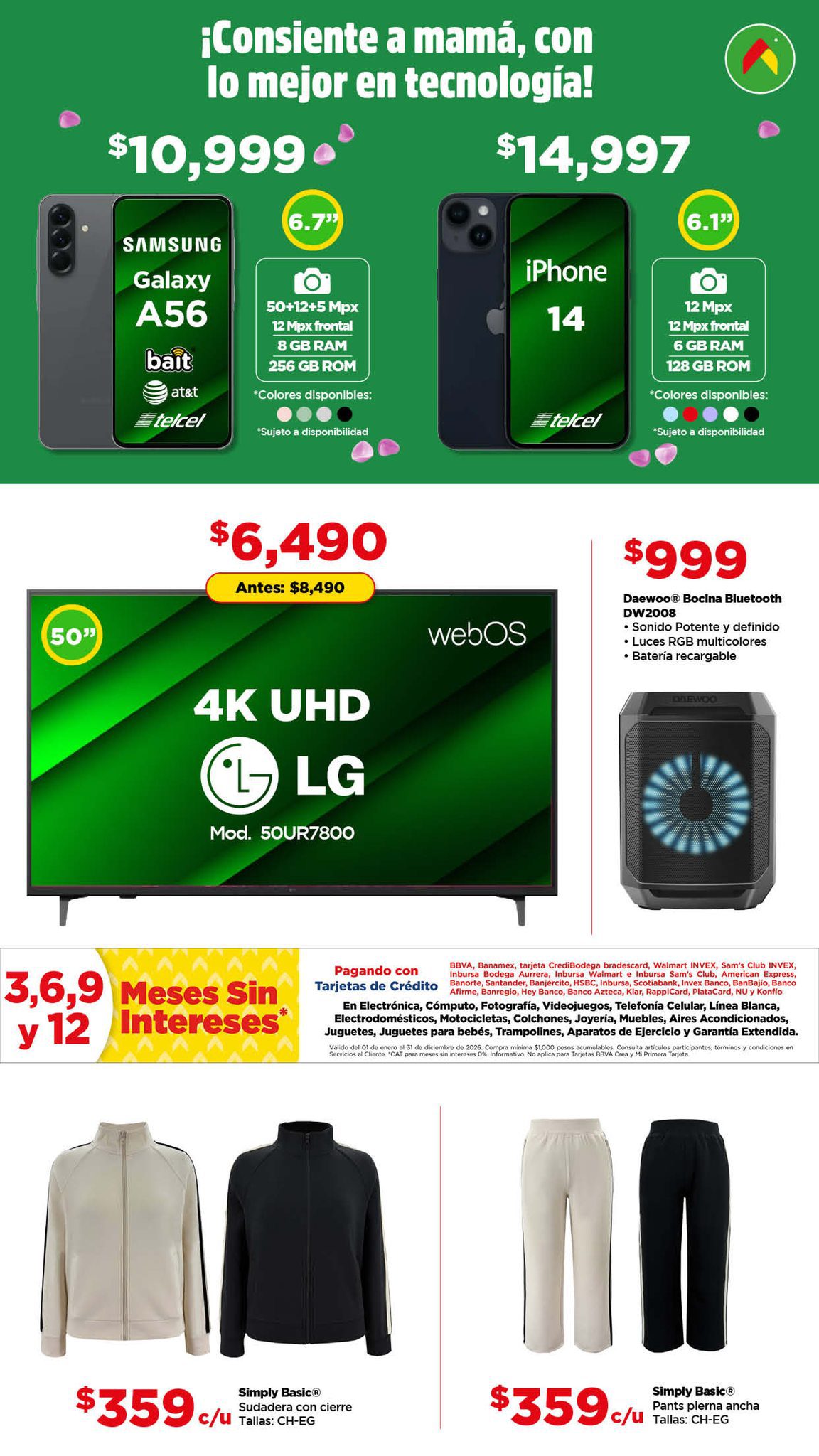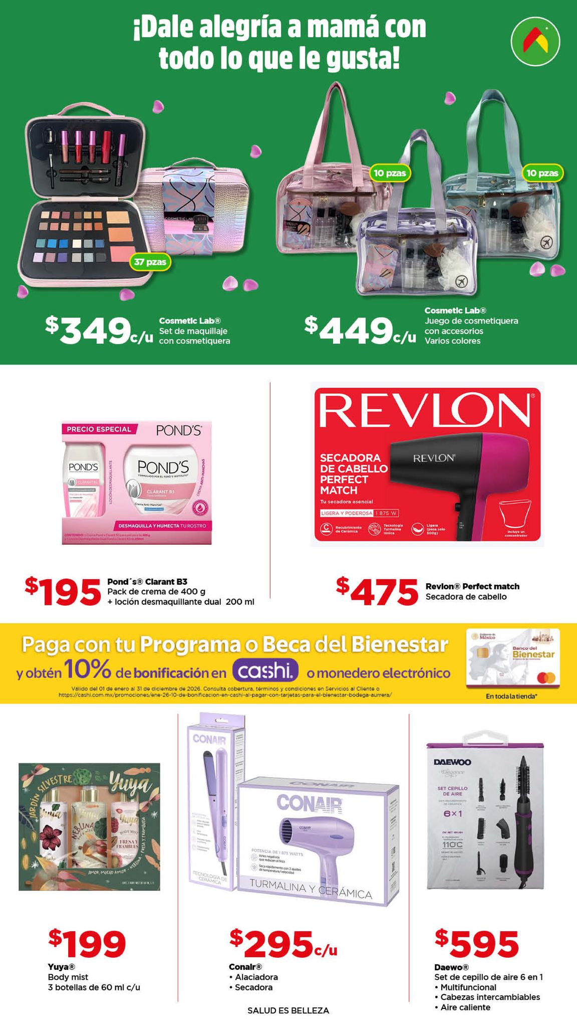 Hace un momento vi el folleto Aquí Si te Alcanza este Día de las Madres, de las tiendas de autoservicio Bodega Aurrera, que contiene sus ofertas válidas del 13 de abril al 12 de mayo de 2026, en el que encontrarás Precios especiales y hasta 12 Meses sin intereses con tarjetas participantes; las ofertas aplican en artículos seleccionados, son válidas en su tienda en línea bodegaaurrera.com.mx y en sus sucursales físicas y éste es su folleto: