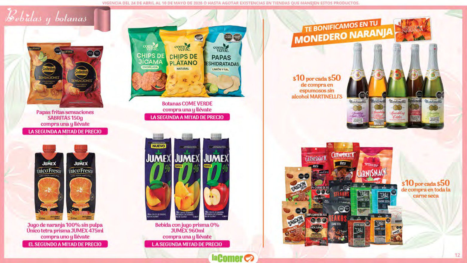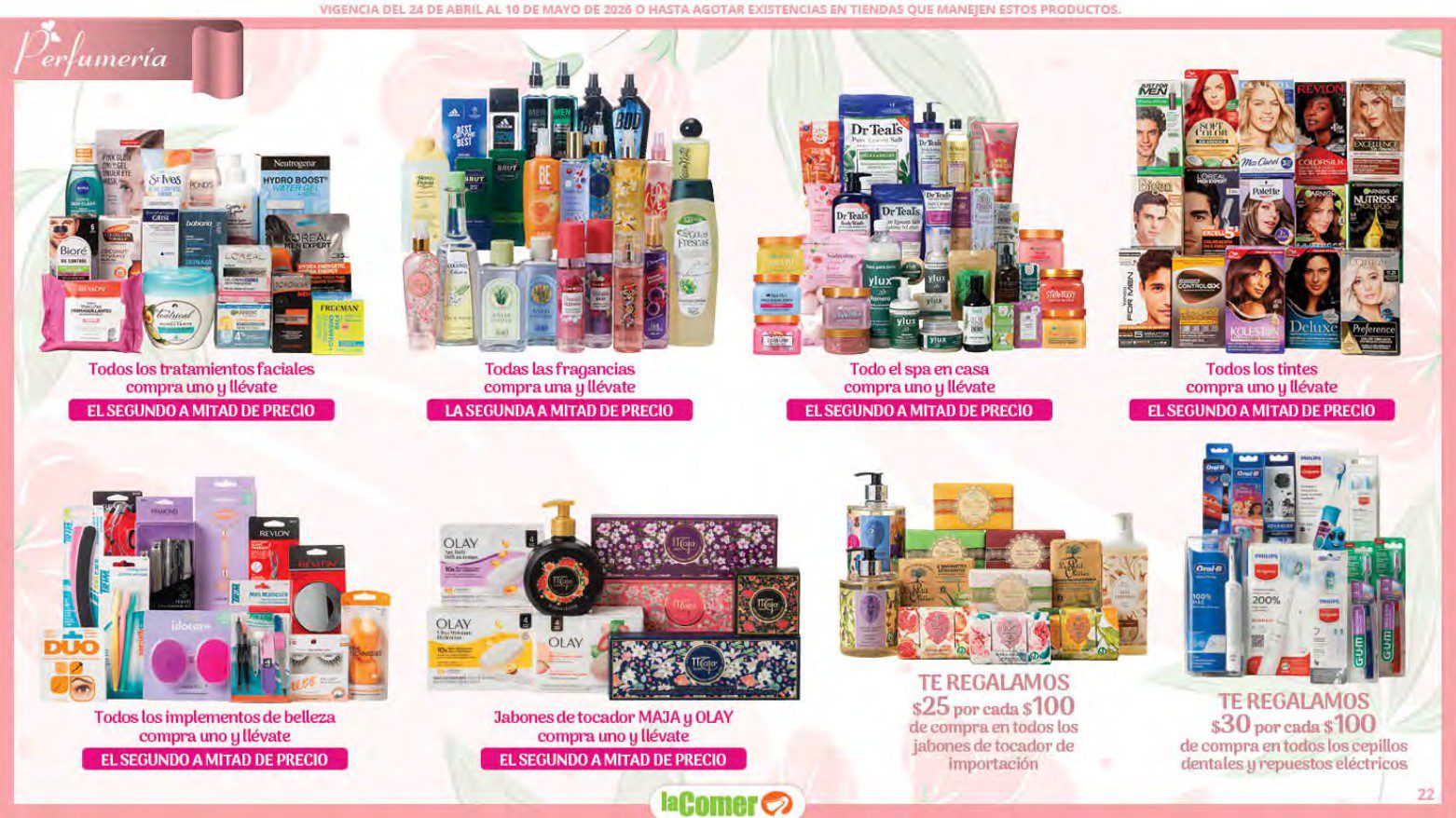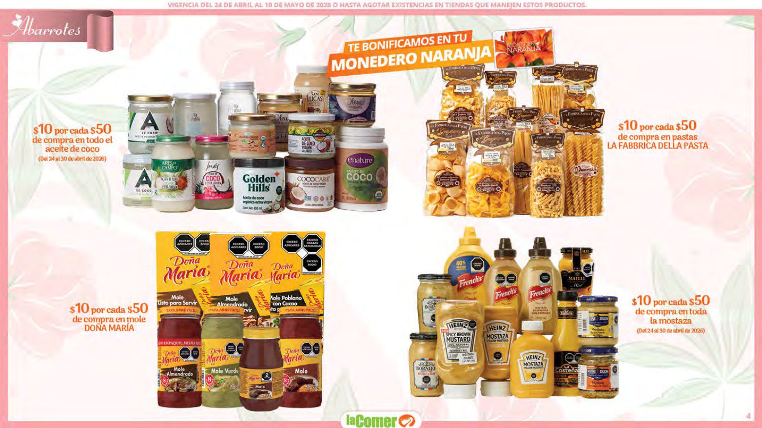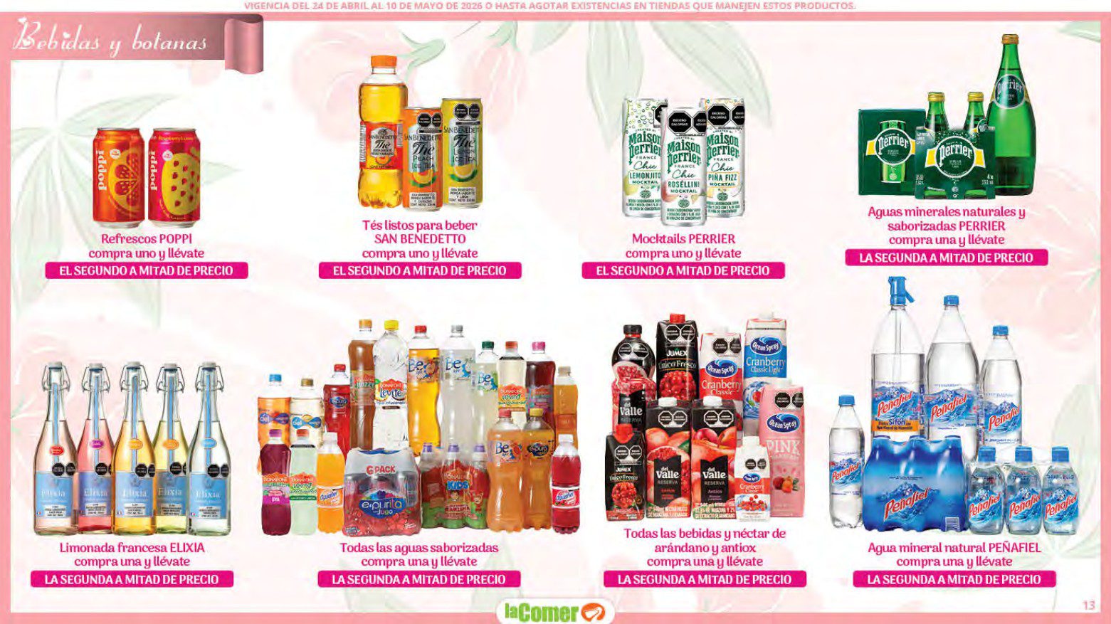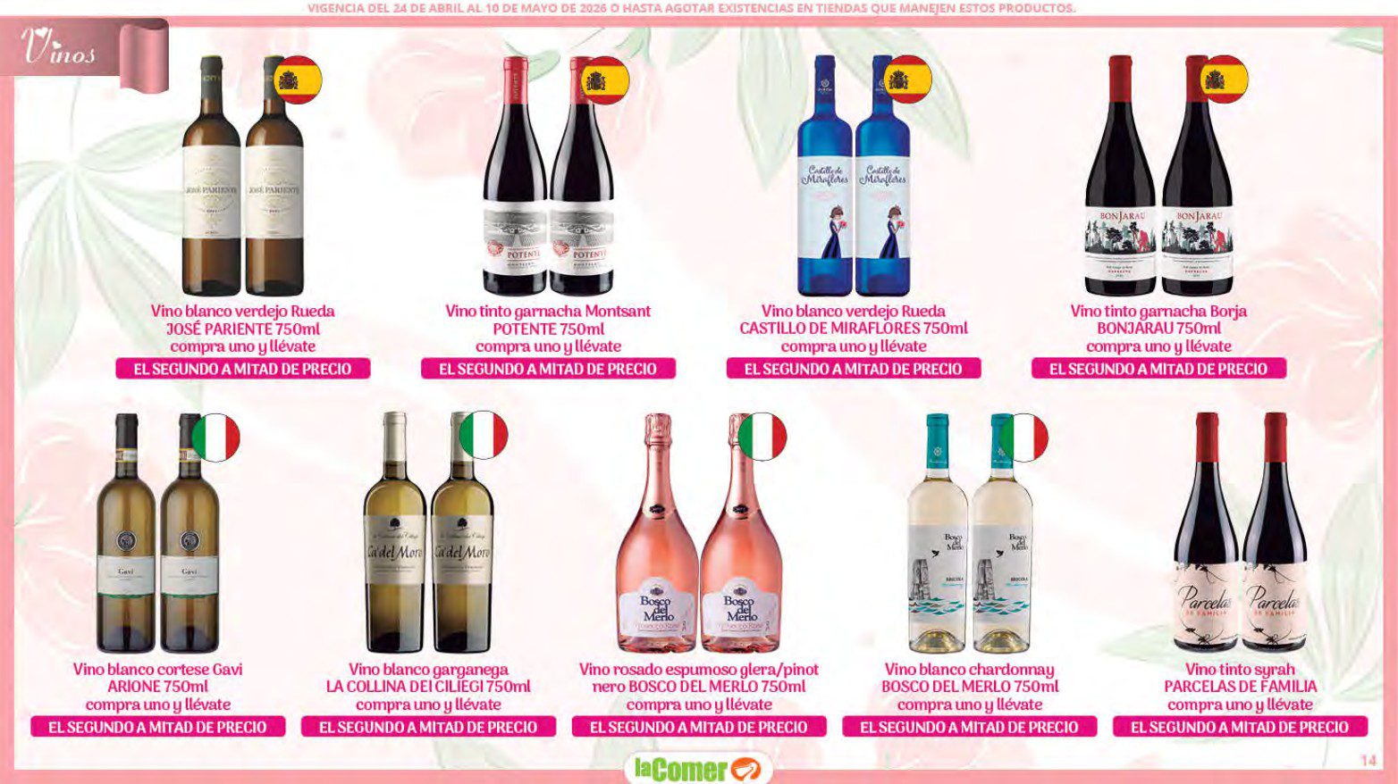 Te comparto el folleto Mamá es lo más Importante por el Día de las Madres de La Comer, que contiene sus ofertas válidas del 24 de abril al 10 de mayo de 2026 o hasta agotar existencias y en el que encontrarás que, en la compra de 1 te llevas el Segundo a Mitad de precio, Bonificaciones en tu Monedero Naranja en la compra de determinados importes, hasta un 30% de descuento, Descuentos especiales en compras por determinadas importes, Precios especiales en productos seleccionados, un 20% de Bonificación en Monedero Naranja por tus Compras en Mundo del Bebé y Ofertas especiales en sus líneas de productos Golden Hills; las ofertas son válidas en su tienda en línea: www.lacomer.com.mx y en sus sucursales físicas y este es su folleto: