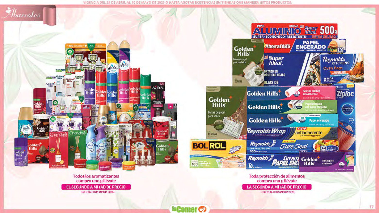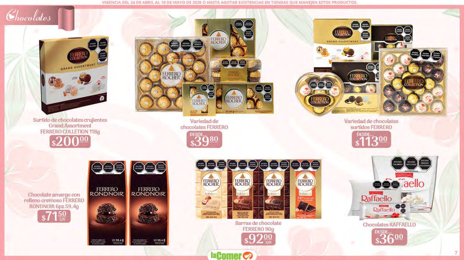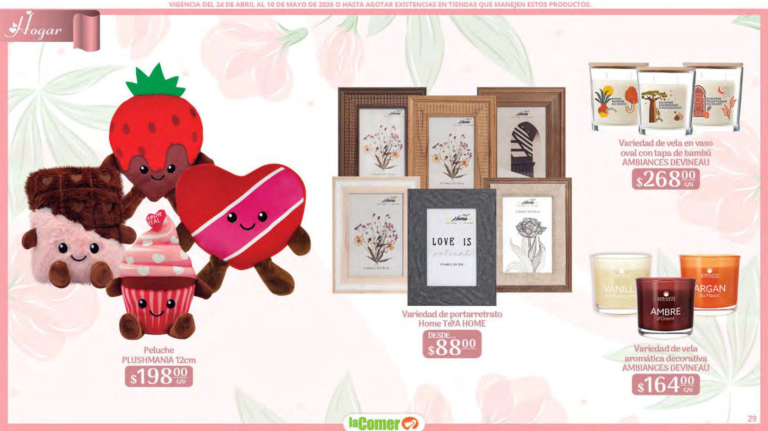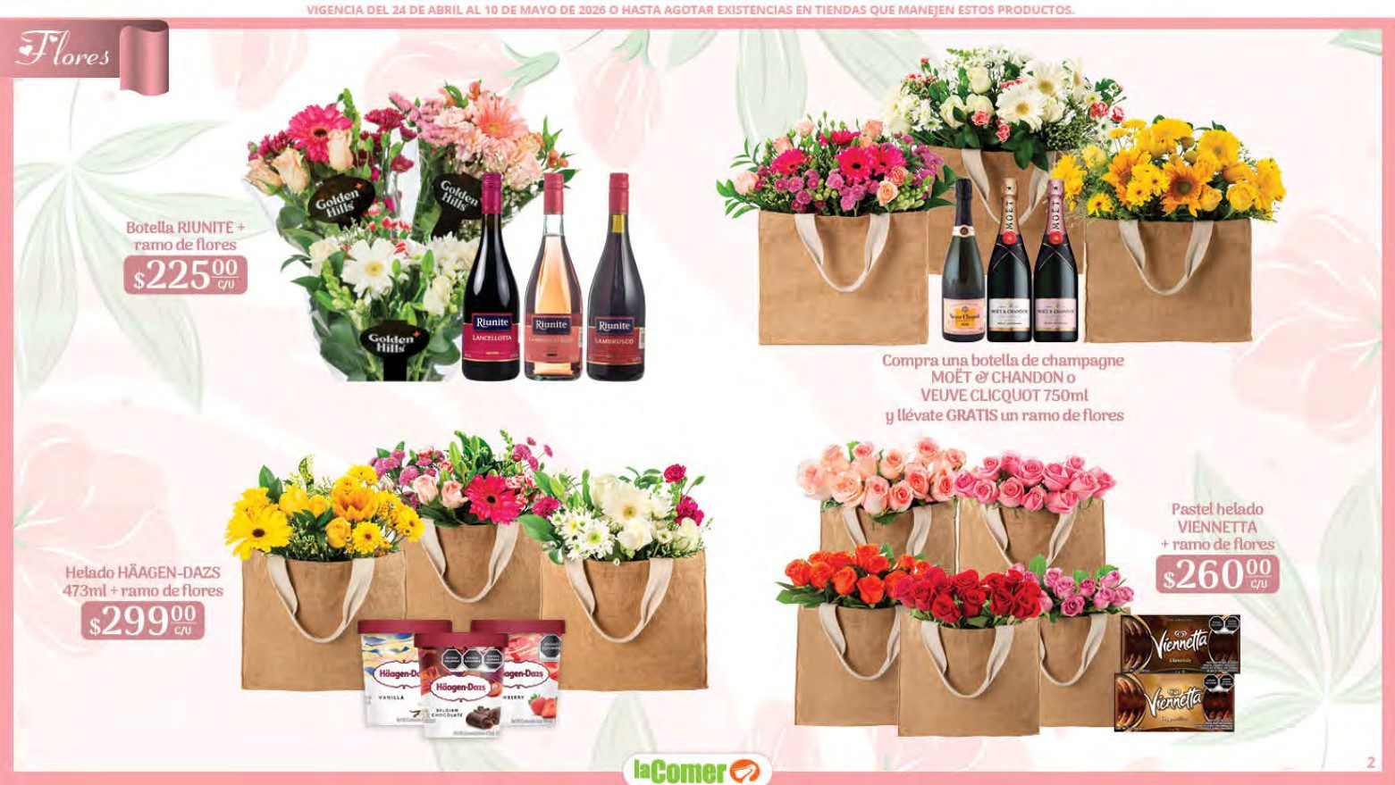 Te comparto el folleto Mamá es lo más Importante por el Día de las Madres de La Comer, que contiene sus ofertas válidas del 24 de abril al 10 de mayo de 2026 o hasta agotar existencias y en el que encontrarás que, en la compra de 1 te llevas el Segundo a Mitad de precio, Bonificaciones en tu Monedero Naranja en la compra de determinados importes, hasta un 30% de descuento, Descuentos especiales en compras por determinadas importes, Precios especiales en productos seleccionados, un 20% de Bonificación en Monedero Naranja por tus Compras en Mundo del Bebé y Ofertas especiales en sus líneas de productos Golden Hills; las ofertas son válidas en su tienda en línea: www.lacomer.com.mx y en sus sucursales físicas y este es su folleto: