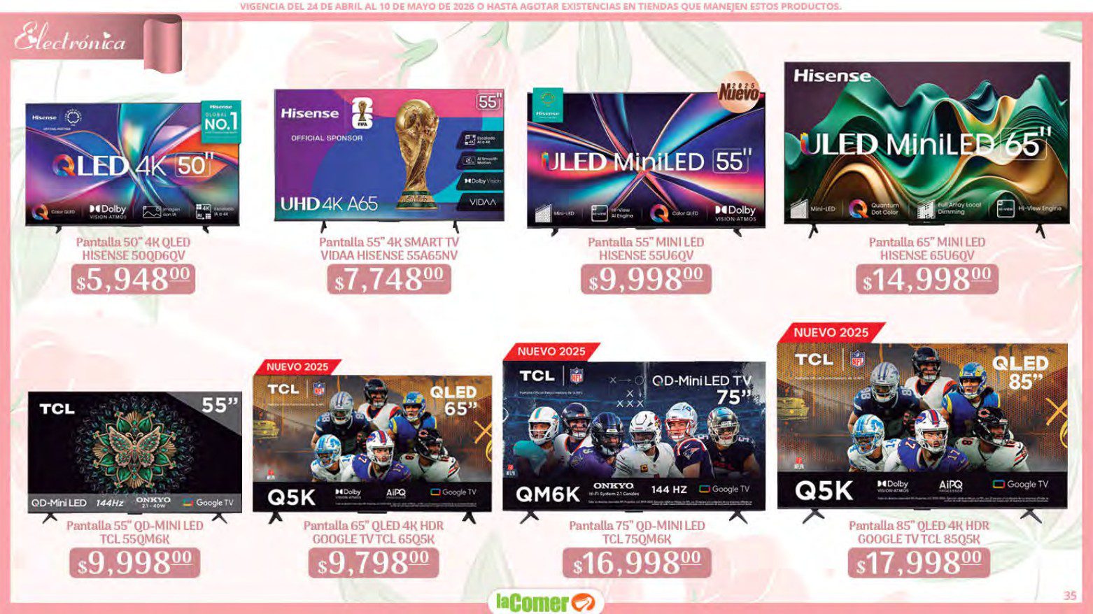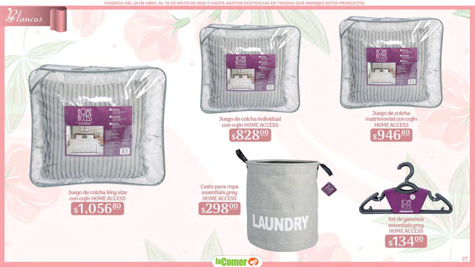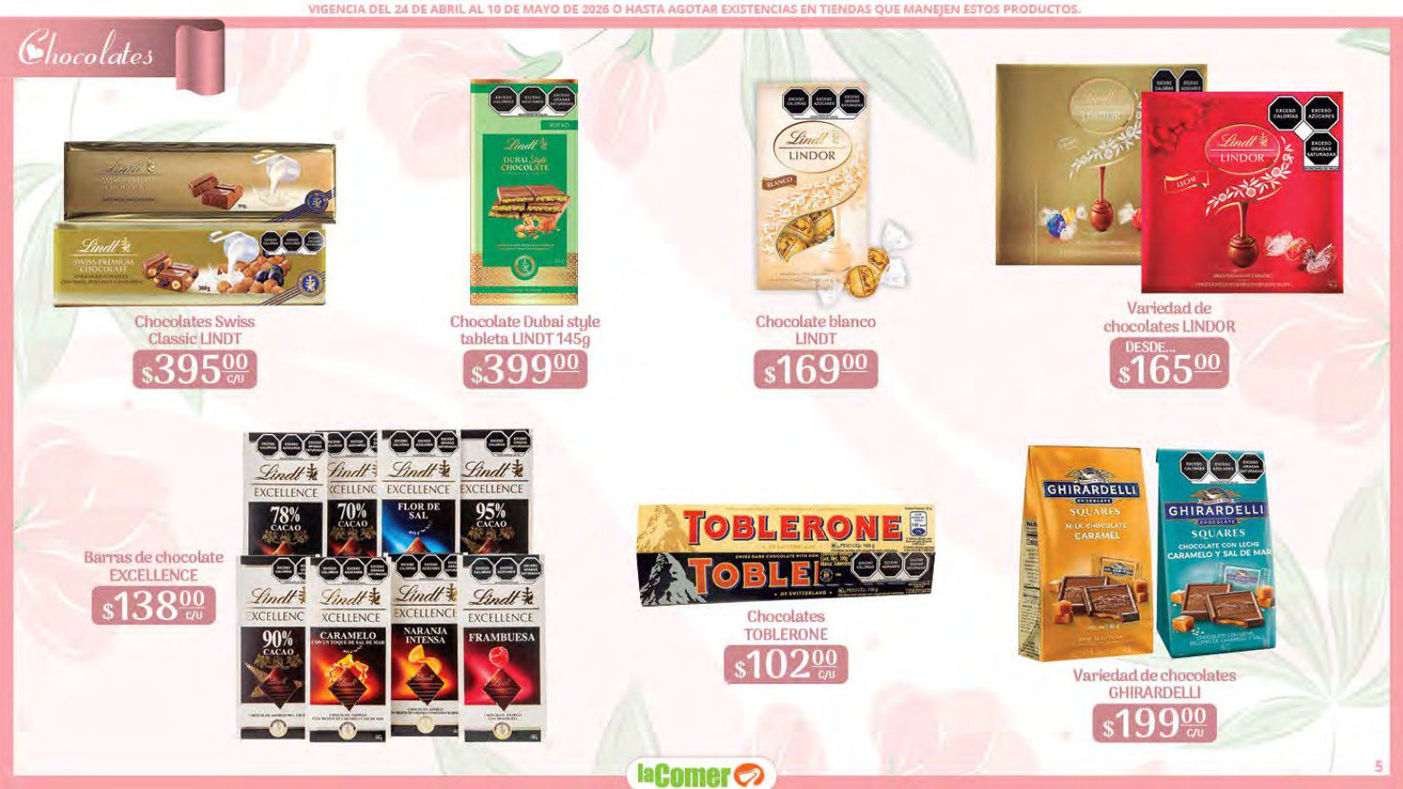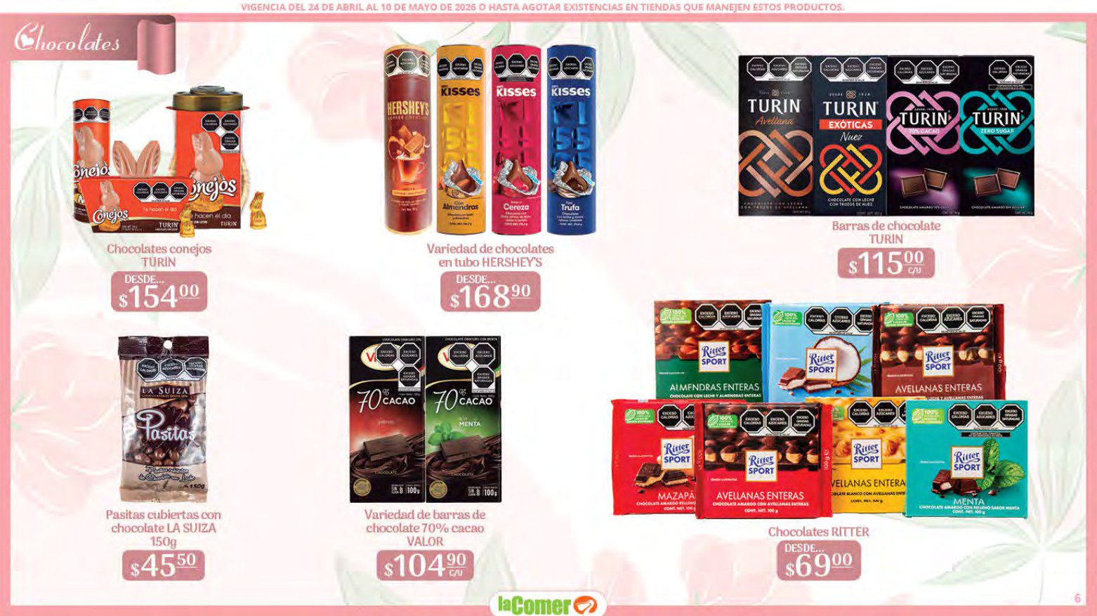 Te comparto el folleto Mamá es lo más Importante por el Día de las Madres de La Comer, que contiene sus ofertas válidas del 24 de abril al 10 de mayo de 2026 o hasta agotar existencias y en el que encontrarás que, en la compra de 1 te llevas el Segundo a Mitad de precio, Bonificaciones en tu Monedero Naranja en la compra de determinados importes, hasta un 30% de descuento, Descuentos especiales en compras por determinadas importes, Precios especiales en productos seleccionados, un 20% de Bonificación en Monedero Naranja por tus Compras en Mundo del Bebé y Ofertas especiales en sus líneas de productos Golden Hills; las ofertas son válidas en su tienda en línea: www.lacomer.com.mx y en sus sucursales físicas y este es su folleto: