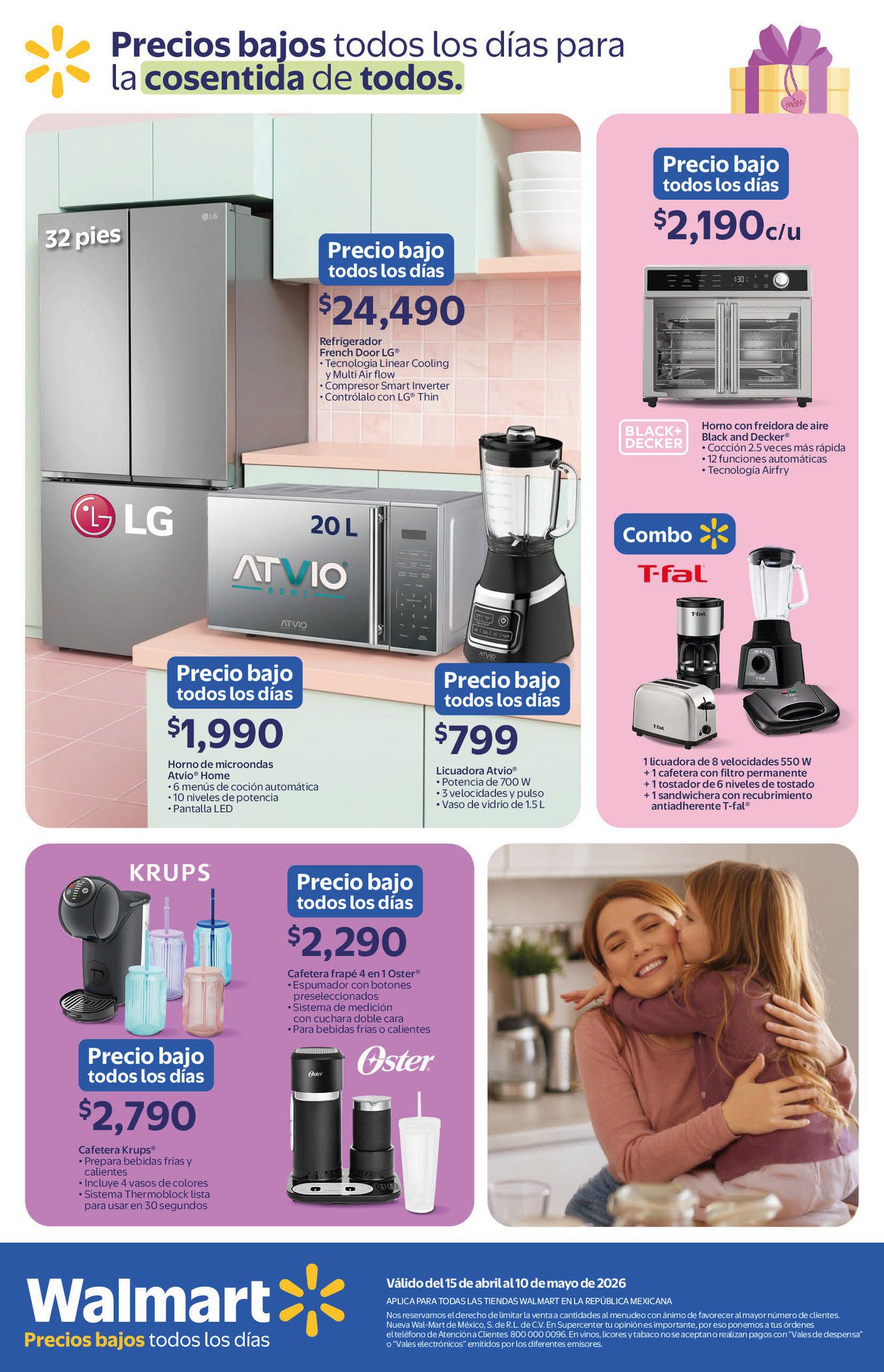 Ya salió el folleto Mamá merece ser consentida en su día, Precios Bajos todos los días por el Día de las Madres de las tiendas de autoservicio Walmart, que contiene sus ofertas válidas del 15 de abril al 10 de mayo de 2026, en el que encontrarás Precios Bajos (Precios especiales todos los días), Multiahorros (Ahorros en la compra de 2 o más unidades), Precios especiales y un 10% de Bonificación en Cashi si pagas con tu Programa o Beca del Bienestar; las ofertas aplican en productos seleccionados, son válidas en sus sucursales físicas y en su tienda en línea walmart.com.mx. Aquí les dejo el folleto: