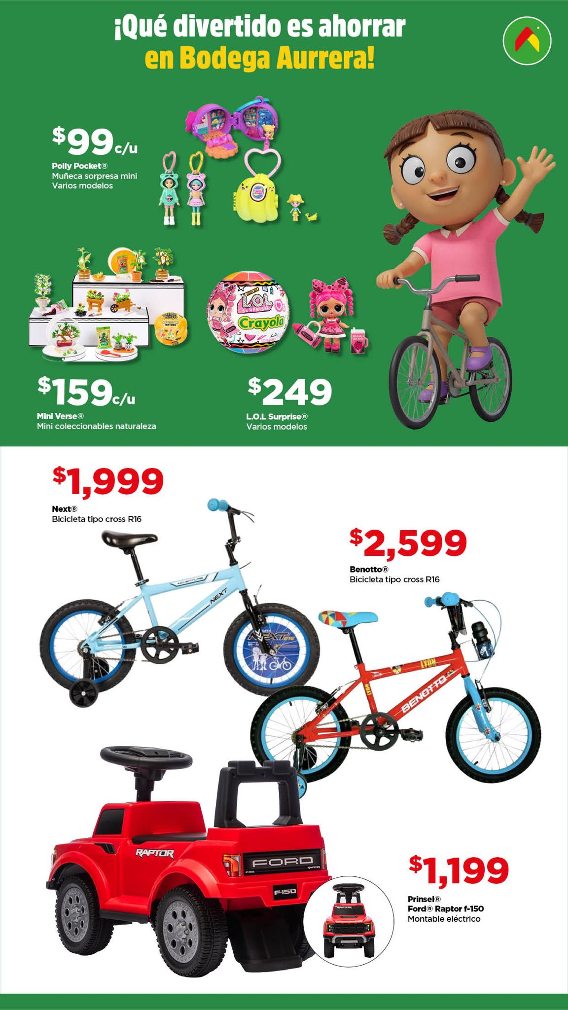 Estoy viendo el folleto Aquí Si te Alcanza este Día del Niño, de las tiendas de autoservicio Bodega Aurrera, que contiene sus ofertas válidas del 10 al 30 de abril de 2026, en el que encontrarás Precios especiales, hasta 18 Meses sin intereses con tarjetas participantes y un 10% de Bonificación en Cashi o Monedero Electrónico si pagas con tu Programa o Beca del Bienestar; las ofertas aplican en artículos seleccionados, son válidas en su tienda en línea bodegaaurrera.com.mx y en sus sucursales físicas y éste es su folleto: