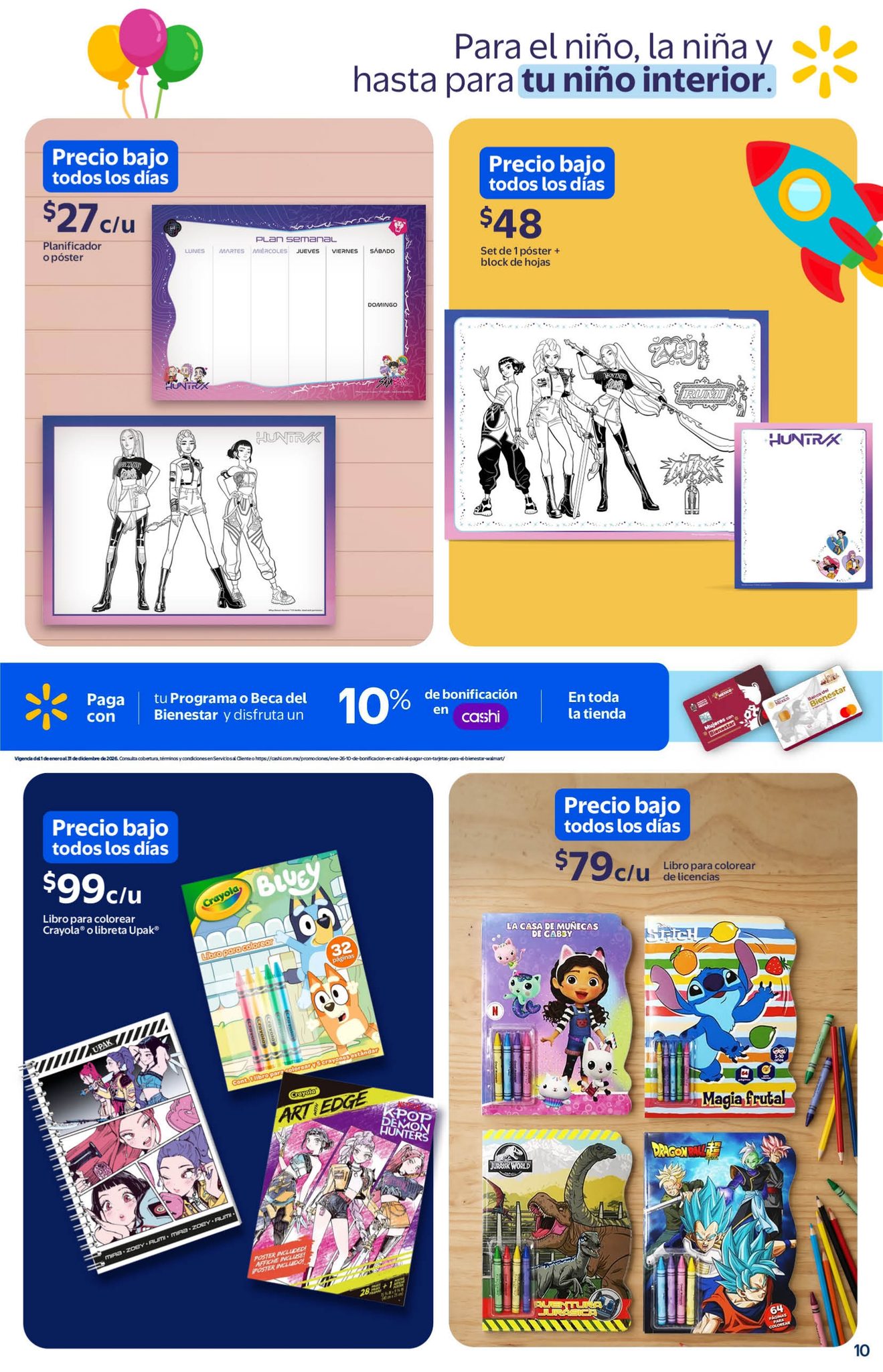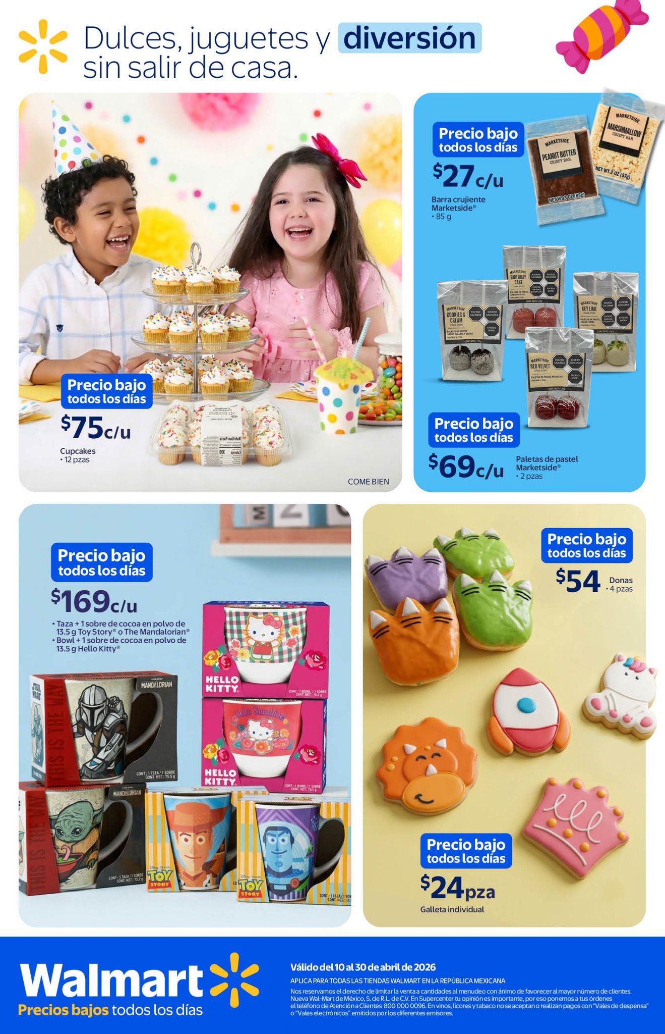 Ya salió el folleto Los Regalos favoritos de los Niños a Precios Bajos todos los días por el Día del Niño de las tiendas de autoservicio Walmart, que contiene sus ofertas válidas del 10 al 30 de abril de 2026, en el que encontrarás Precios Bajos (Precios especiales todos los días), Multiahorros (Ahorros en la compra de 2 o más unidades) y un 10% de Bonificación en Cashi si pagas con tu Programa o Beca del Bienestar; las ofertas aplican en productos seleccionados, son válidas en sus sucursales físicas y en su tienda en línea walmart.com.mx. Aquí les dejo el folleto: