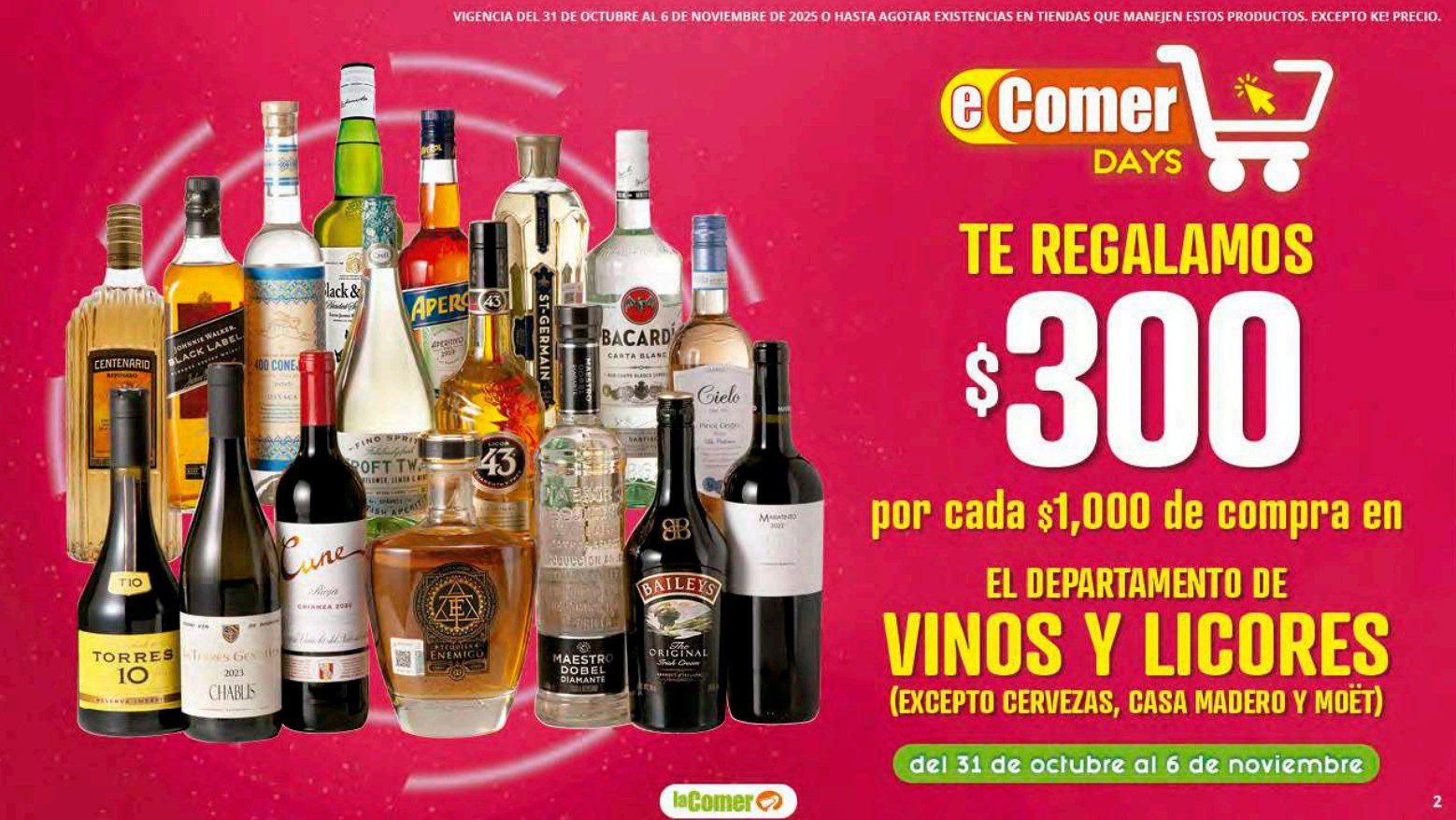 Les aviso que en La Comer está su promoción eComer Days 2025, en la que del 31 de octubre al 06 de noviembre de 2024 o hasta agotar existencias, encontrarán Bonificaciones en tu Monedero Naranja en la compra de determinados importes, Descuentos especiales en compras por determinadas cantidades, Precios especiales y Ofertas en su línea de productos Golden Hills; las ofertas son válidas en su tienda en línea lacomer.com.mx y ahora también en sus sucursales físicas participantes.