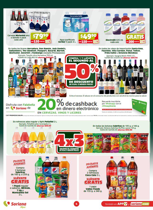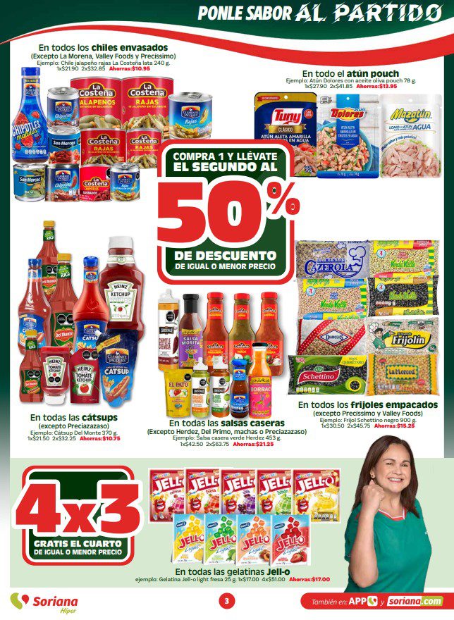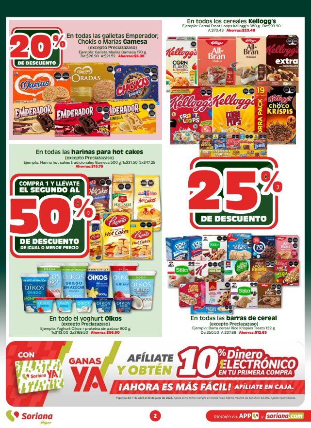 Te comparto el folleto En México Apoyamos con Todo de Soriana Híper, que contiene sus ofertas válidas del 07 al 14 de abril de 2026 o agotar existencias, y en el que encontrarás 4×3, 6×5 (el producto GRATIS será el de igual o menor precio), Beneficios con tu Tarjeta Soriana Ya (como Productos Gratis con una determinada cantidad de Puntos), en la compra de 1 te llevas el 2º con un 50% ó un 70% de descuento (en productos de igual o menor precio), Pa’Quete Ahorres (como Producto Gratis en la compra de productos seleccionados), hasta un 30% de descuento, Precios especiales y hasta 18 Meses sin intereses; las ofertas son válidas en artículos seleccionados y aplican en su tienda en línea soriana.com y en sus sucursales físicas participantes.