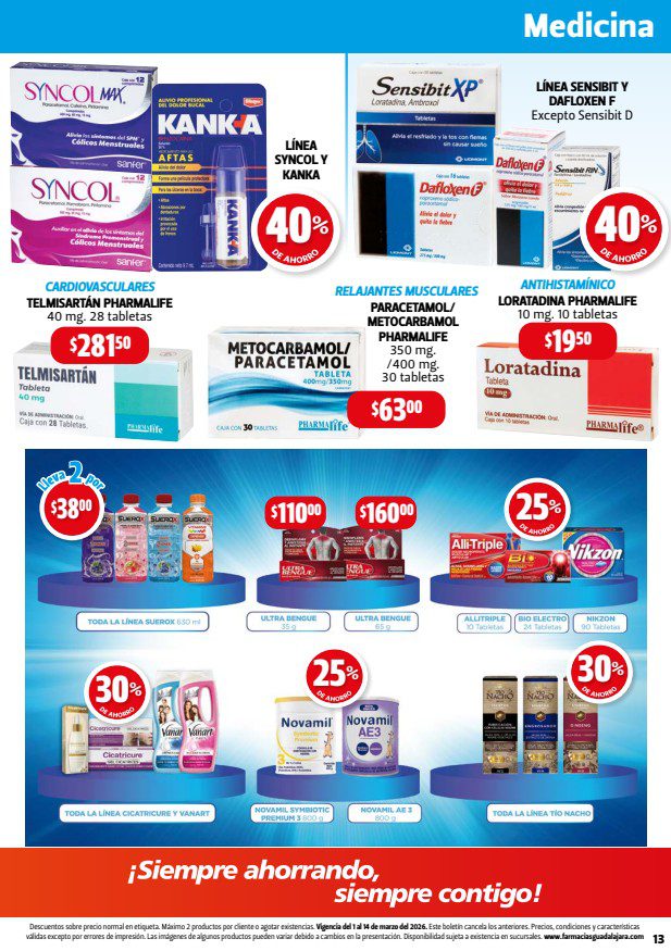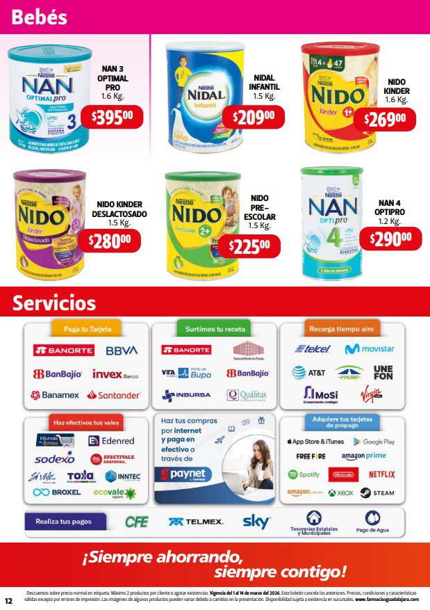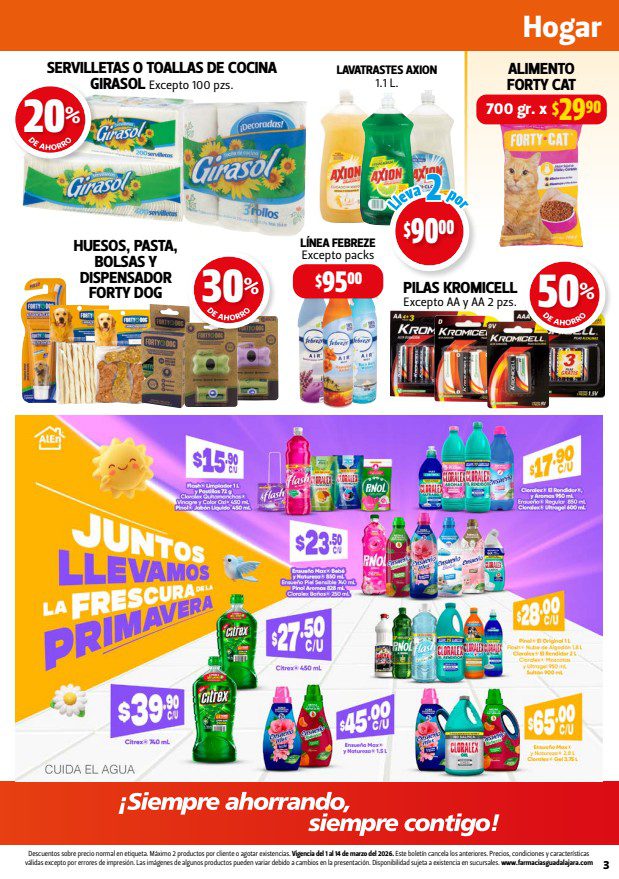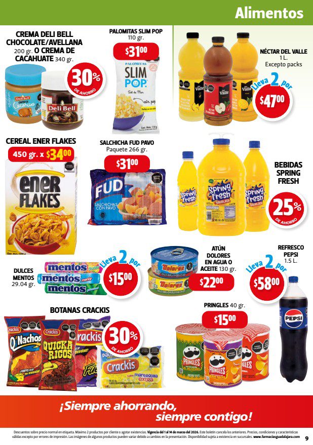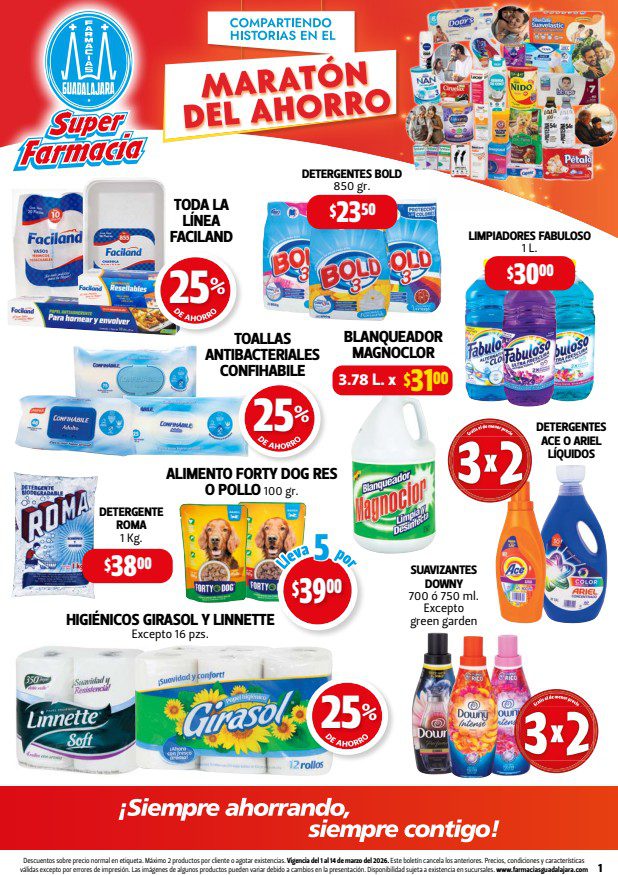 Hace un momento vi el folleto Maratón del Ahorro, que las Farmacias Guadalajara publicaron y que contiene sus ofertas válidas del 01 al 14 de marzo de 2026 en departamentos como Alimentos, Hogar, Bebés, Cuidado Personal y Medicina; en el que encontrarás un 3×2 en artículos seleccionados, Ahorros especiales en la compra de determinada cantidad de productos, y Precios especiales en mercancía seleccionada. Aquí te dejo el folleto: