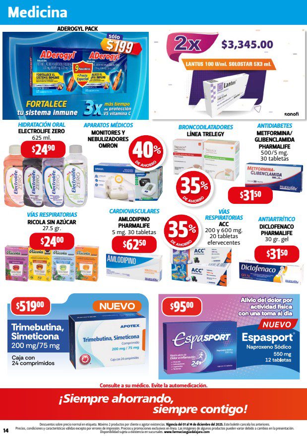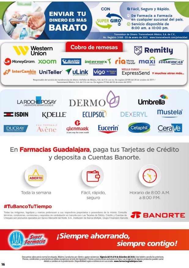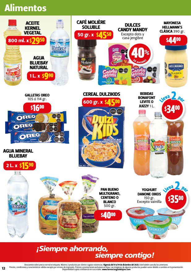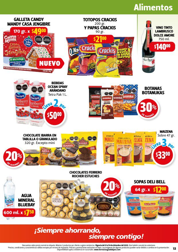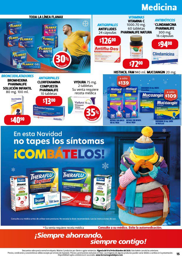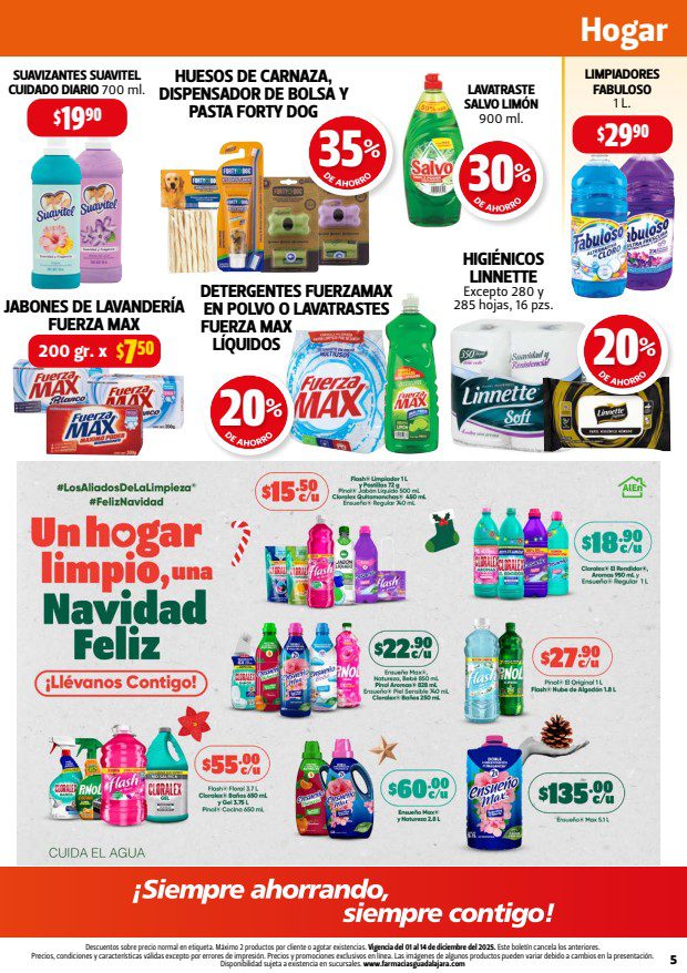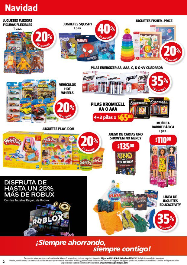 Hace un momento vi el folleto Vive la Navidad, que las Farmacias Guadalajara publicaron y que contiene sus ofertas válidas del 01 al 14 de diciembre de 2025 en departamentos como Alimentos, Hogar, Bebés, Cuidado Personal y Medicina; en el que encontrarás3×2 en artículos seleccionados, Ahorros especiales en la compra de determinada cantidad de productos, hasta un 40% de descuento en productos participantes y Precios especiales en mercancía seleccionada. Aquí te dejo el folleto:
