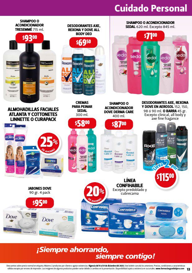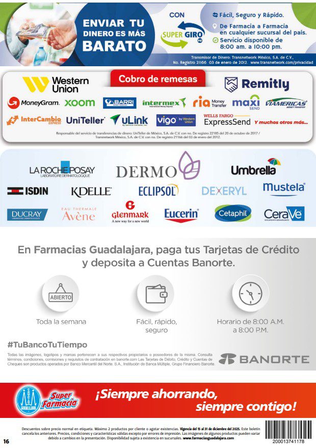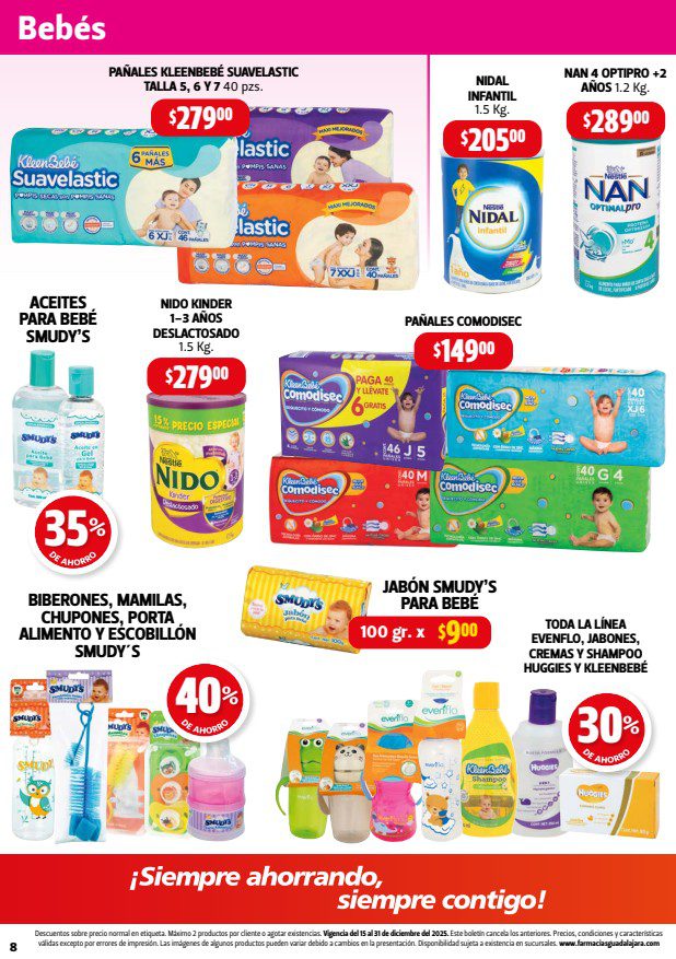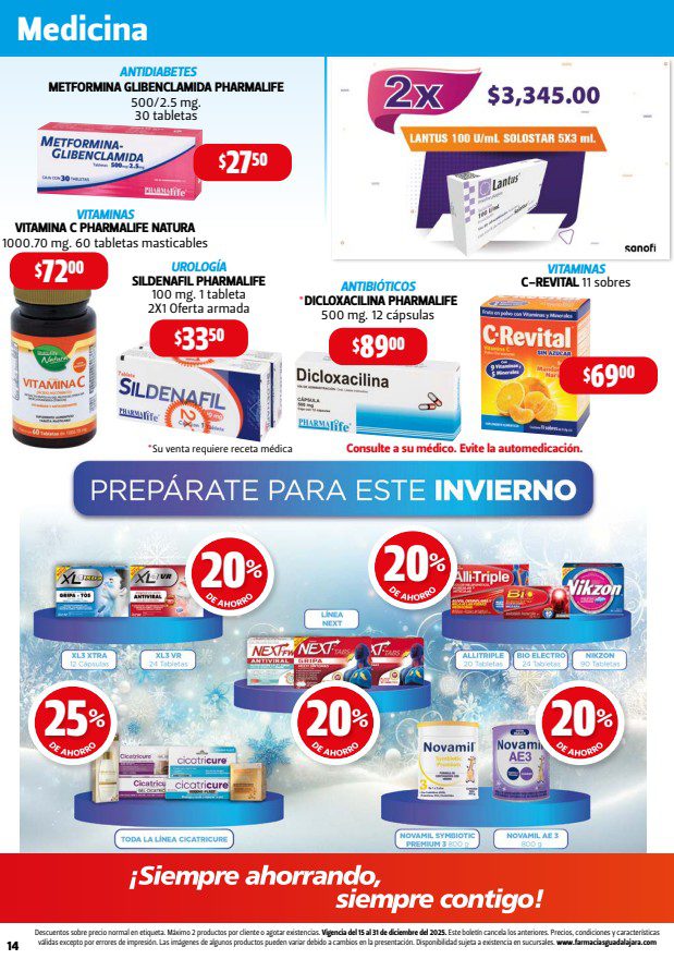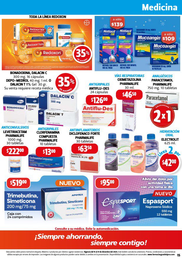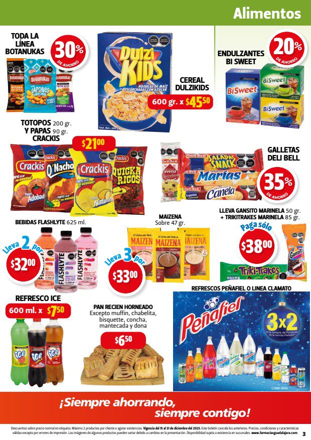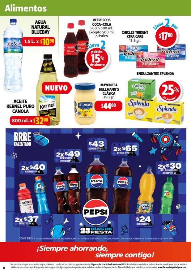 Hace un momento vi el folleto Vive La Navidad, que las Farmacias Guadalajara publicaron y que contiene sus ofertas válidas del 15 al 31 de diciembre de 2025 en departamentos como Navidad, Juguetes, Alimentos, Hogar, Bebés, Cuidado Personal y Medicina; en el que encontrarás 2×1, 3×2 en artículos seleccionados, Ahorros especiales en la compra de determinada cantidad de productos, hasta un 40% de descuento en productos participantes y Precios especiales en mercancía seleccionada. Aquí te dejo el folleto: