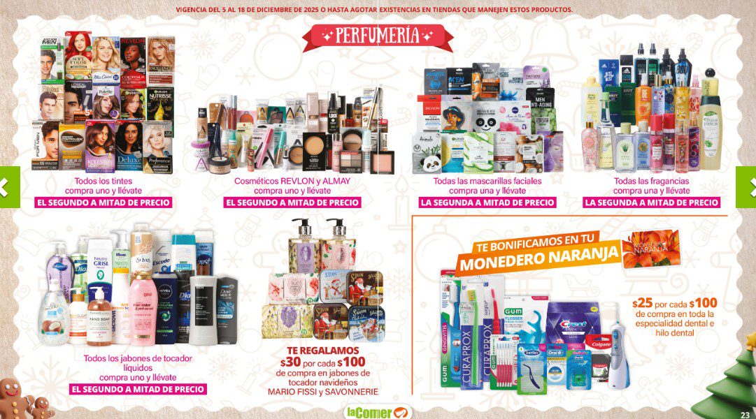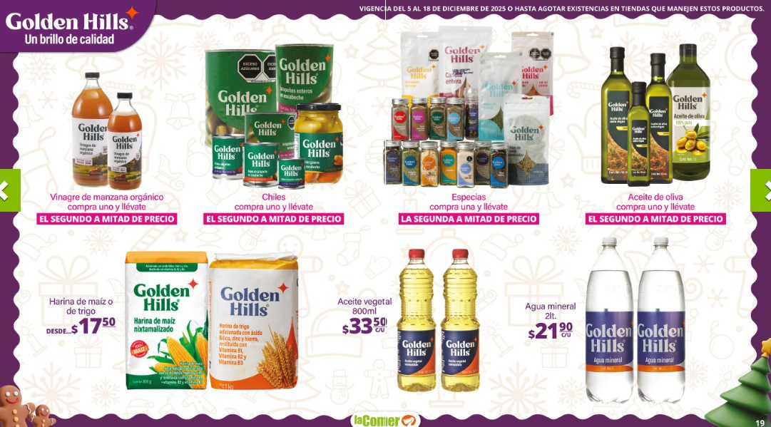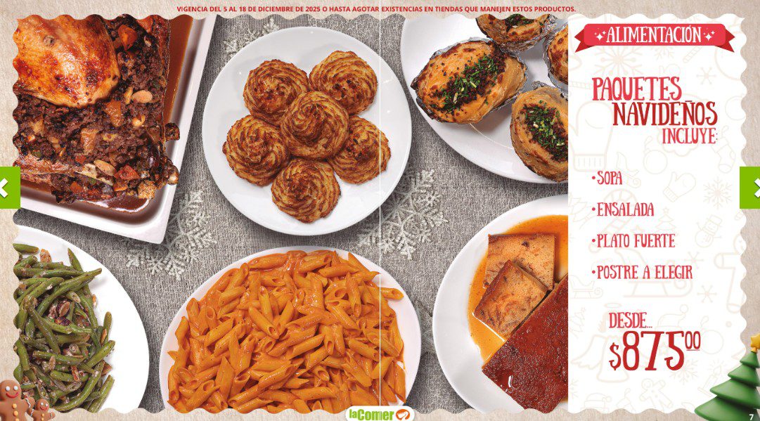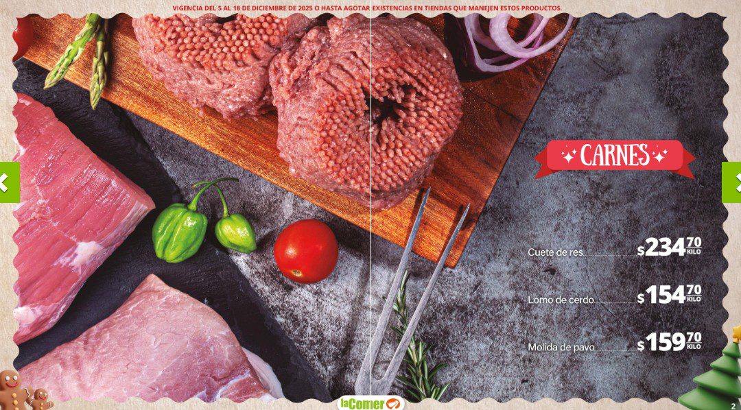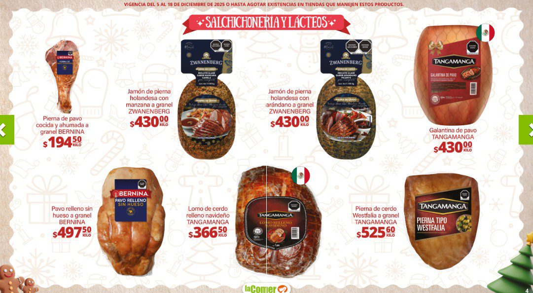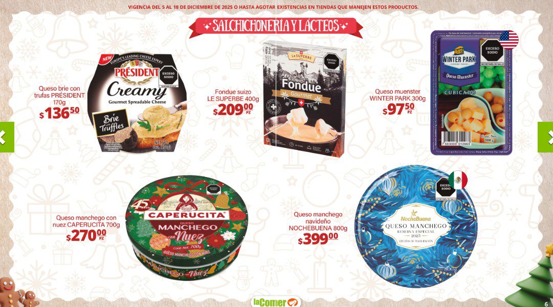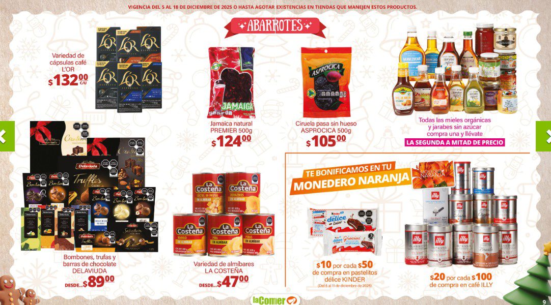 Te comparto el folleto Felices Fiestas por Navidad de La Comer y Fresko, que contiene sus ofertas válidas del 05 al 18 de diciembre de 2025 o hasta agotar existencias y en el que encontrarás un 4×3 (en la compra de 3, te llevas GRATIS el 4º), en la compra de 1 te llevas el Segundo a Mitad de precio, Bonificaciones en tu Monedero Naranja en la compra de determinados importes, Descuentos especiales en compras por determinadas cantidades, Despensas, Cenas Navideñas, Ahorros especiales en la compra de determinadas unidades, Precios especiales en productos seleccionados y Ofertas especiales en su línea de productos Golden Hills; las ofertas son válidas en su tienda en línea: lacomer.com.mx y en sus sucursales físicas y este es su folleto: