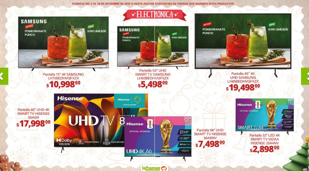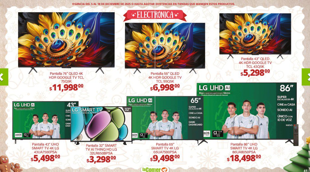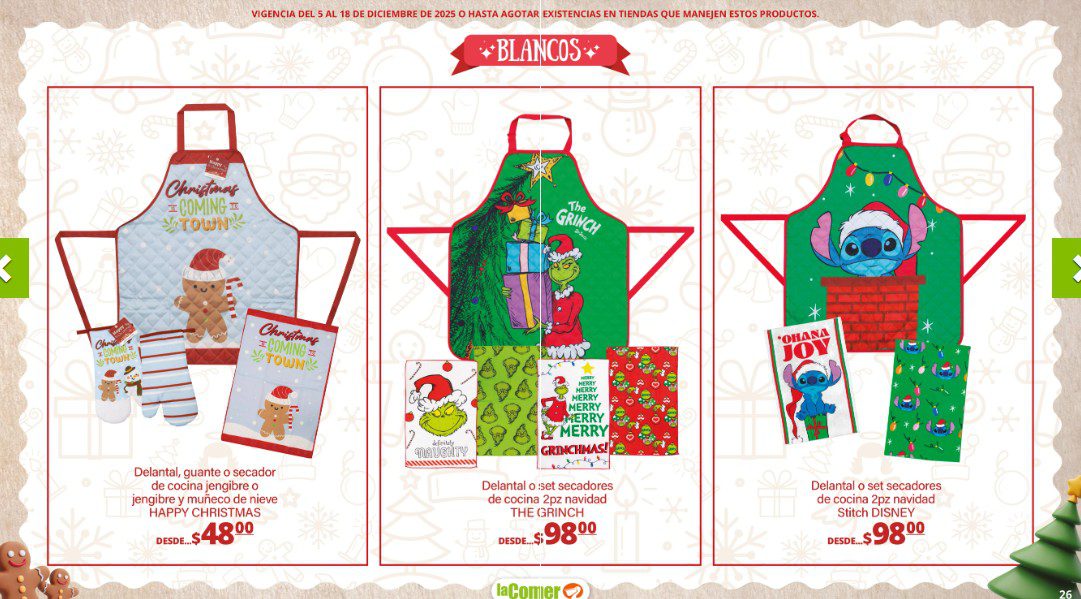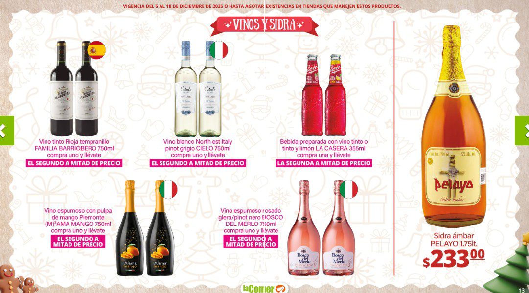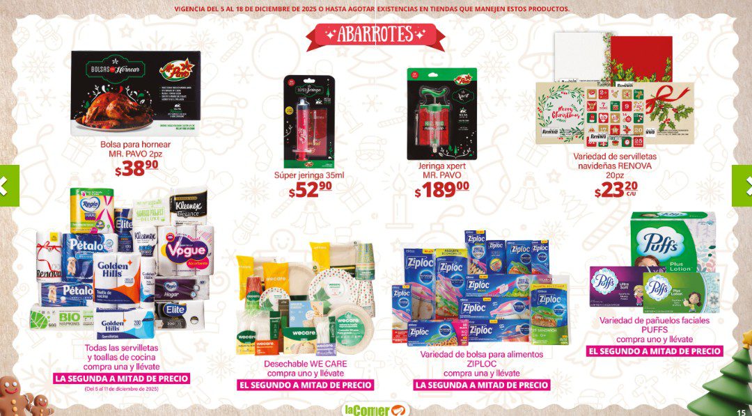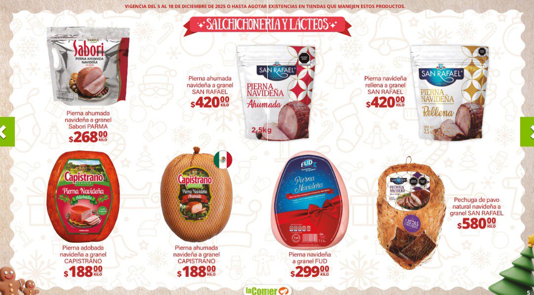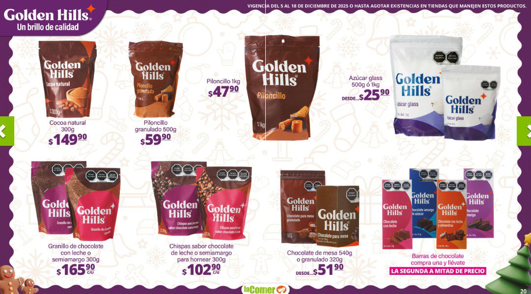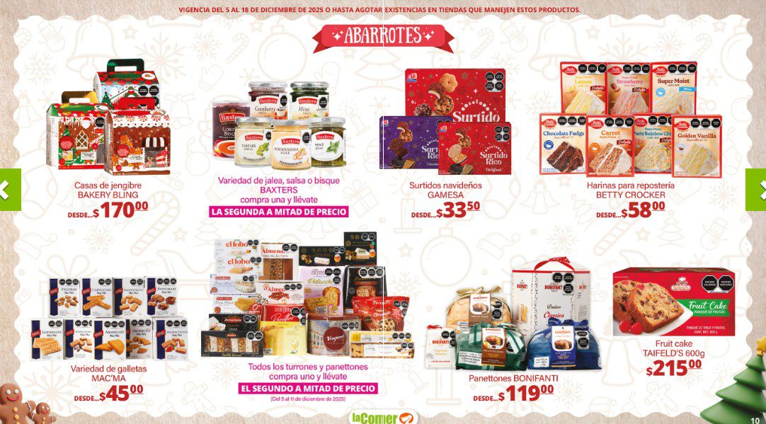 Te comparto el folleto Felices Fiestas por Navidad de La Comer y Fresko, que contiene sus ofertas válidas del 05 al 18 de diciembre de 2025 o hasta agotar existencias y en el que encontrarás un 4×3 (en la compra de 3, te llevas GRATIS el 4º), en la compra de 1 te llevas el Segundo a Mitad de precio, Bonificaciones en tu Monedero Naranja en la compra de determinados importes, Descuentos especiales en compras por determinadas cantidades, Despensas, Cenas Navideñas, Ahorros especiales en la compra de determinadas unidades, Precios especiales en productos seleccionados y Ofertas especiales en su línea de productos Golden Hills; las ofertas son válidas en su tienda en línea: lacomer.com.mx y en sus sucursales físicas y este es su folleto: