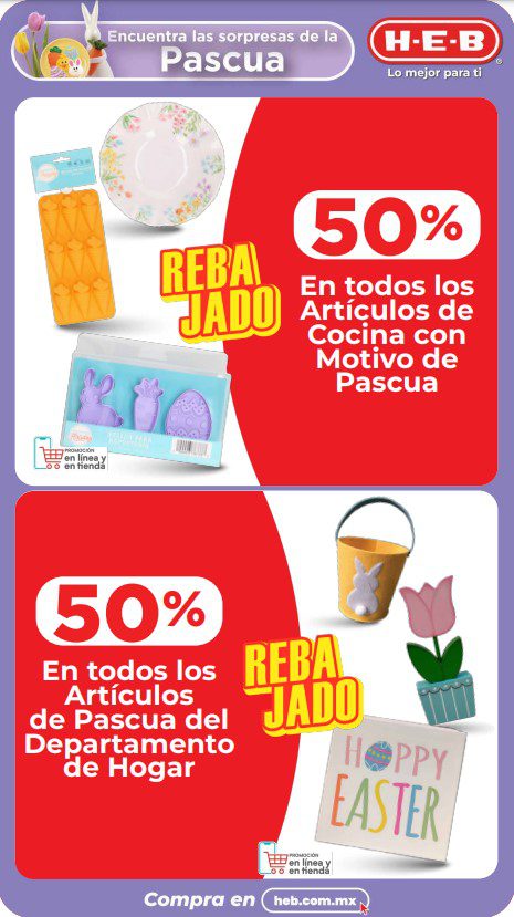 HEB ya publicó su folleto de Fin de semana Expertos en Frescura al Mejor Precio, con las ofertas tendrán del 22 al 25 de marzo de 2024 o hasta agotar existencias; algunas aplican solo en sucursales físicas y otras también en su tienda en línea heb.com.mx; encontrarás ofertas en sus categorías Combo Loco (producto Gratis en la compra de artículos participantes); Promo Ahorro (ahorros en dinero en la compra de determinados importes); Rebajado (descuentos o precios especiales en mercancía seleccionada); Ahorra Más (Combos a precios especiales); Segundo a Mitad de Precio (en la compra de 1 te dan el 2º a mitad de precio); Precio Bajo (Precios especiales); Promociones especiales si pagas con tu tarjeta de crédito HEB-Afirme y en Farmacia, Producto Gratis en la compra de determinadas unidades de medicamentos participantes. Éste es el folleto: