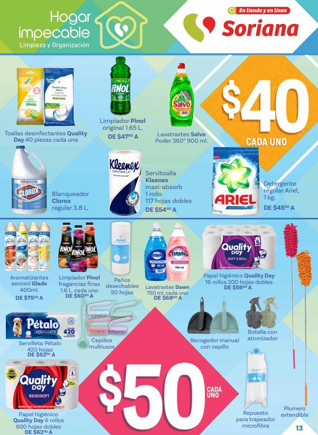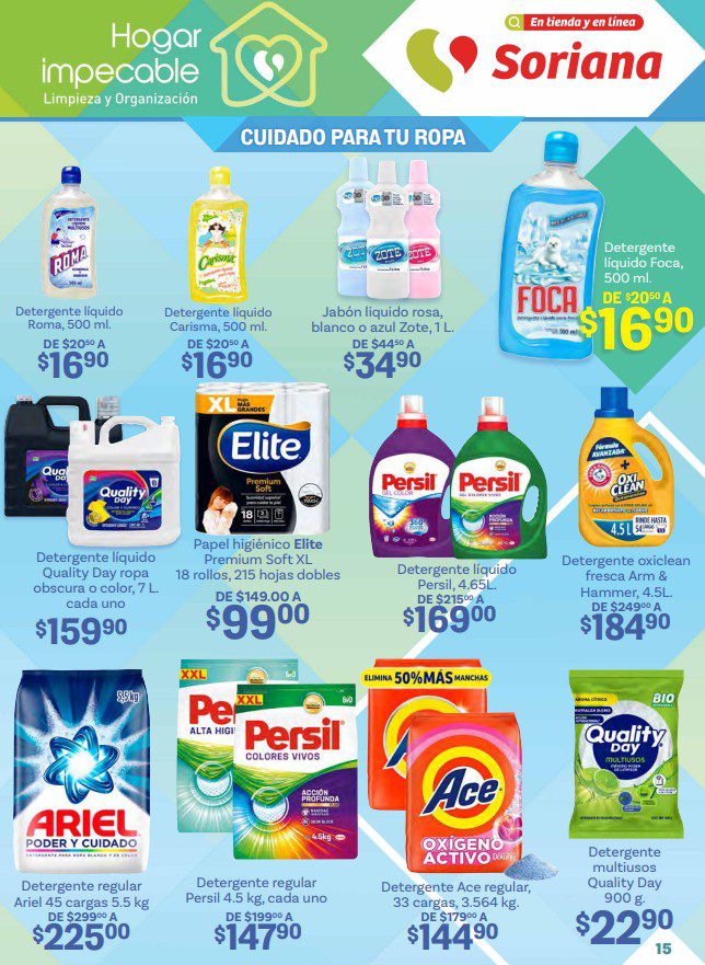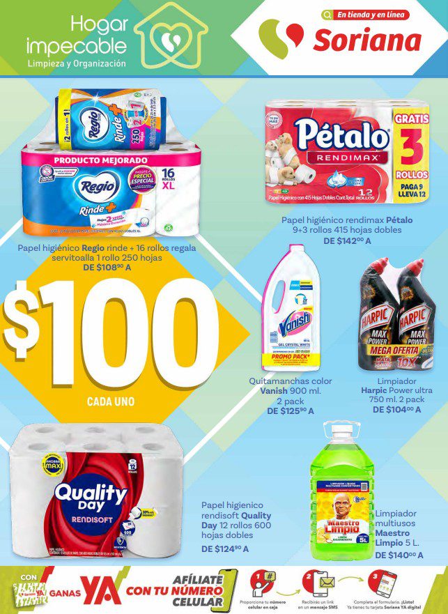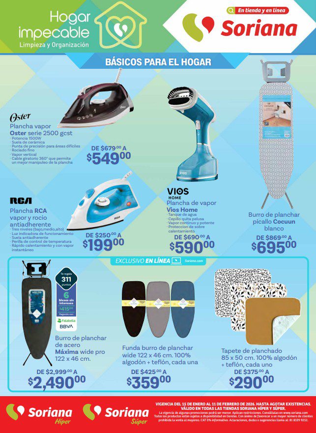Acabo de ver el folleto Hogar Impecable: Limpieza y Organización de Soriana Híper, que contiene sus ofertas válidas del 15 de enero al 11 de febrero de 2026 o agotar existencias, y en el que encontrarás Precios especiales (con productos desde $10.00); las ofertas son válidas en artículos seleccionados y aplican en su tienda en línea soriana.com y en sus sucursales físicas participantes.