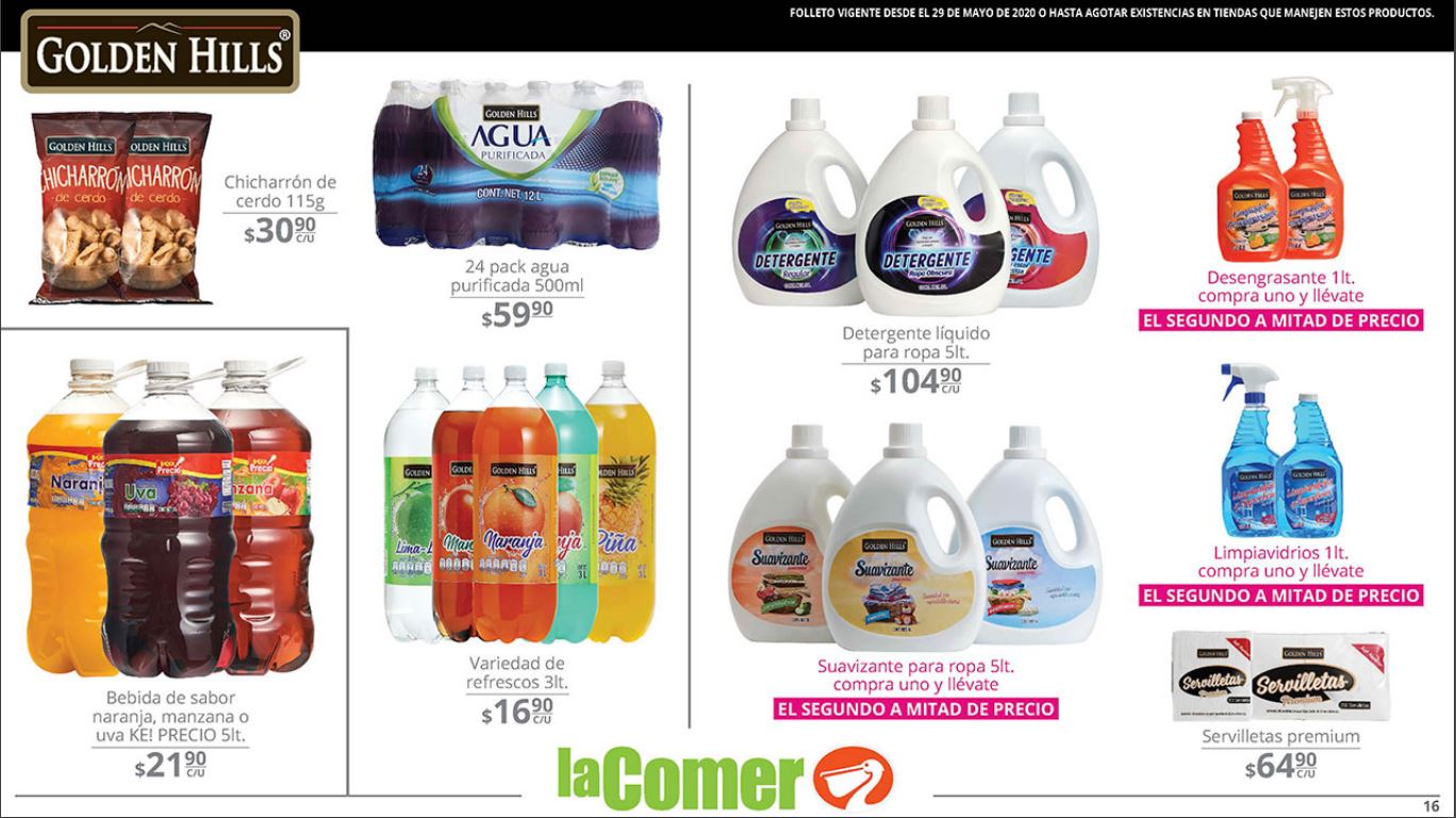 La Comer acaba de publicar su folleto que estará vigente desde el 29 de mayo de 2020 o hasta agotar existencias en las tiendas, en el que encontrarás ofertas como el Segundo a Mitad de Precio, Bonificaciones en tu Monedero Naranja, Precios especiales y ofertas especiales en productos de su marca Golden Hills; las ligas de su tienda en línea son http://vasalsuperoalacomer.com/comer/ y https://www.lacomer.com.mx/lacomer. Te comparto el folleto completo: