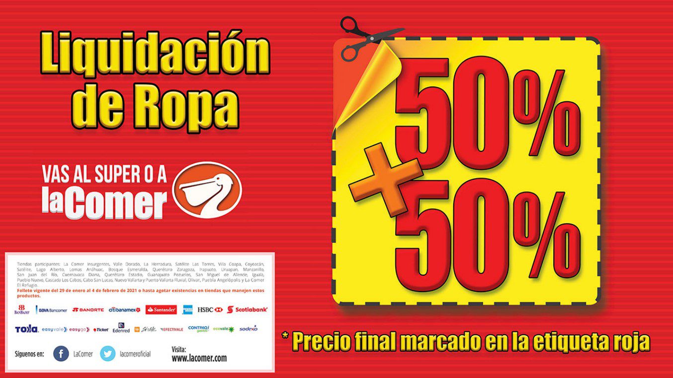 Te comparto el folleto “Llegaron los Mejores Precios” de La Comer, que contiene sus ofertas válidas del 29 de enero al 04 de febrero de 2021 o hasta agotar existencias y en el que encontrarás que en la compra de 1 te llevas el Segundo a Mitad de precio, Bonificaciones en tu Monedero Naranja en la compra de determinados importes, Precios especiales en productos seleccionados, Ofertas especiales en su línea de productos Ke Precio! y hasta 50% de descuento + un 50% de descuento en su Liquidación de Ropa (el precio final está marcado en la etiqueta roja); las ligas de sus tiendas en línea son: http://vasalsuperoalacomer.com/comer/ y https://www.lacomer.com.mx/ y este es su folleto: