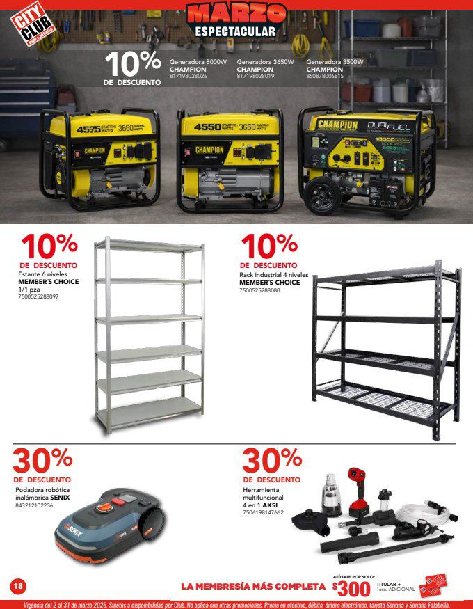 Los clubes de precios City Club publicaron su folleto Marzo Espectacular, que contiene sus ofertas válidas del 02 al 31 de marzo de 2026 y en el que encontrarás un 4×3, Ahorros en la compra de determinadas unidades, hasta un 60% de descuento y Precios especiales; las ofertas son válidas en su tienda en línea www.cityclub.com.mx y en sus sucursales físicas, aplican en mercancía seleccionada.