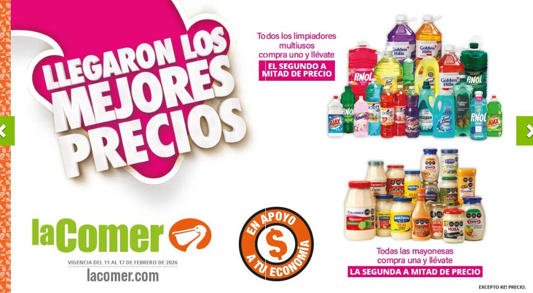 Ya está aquí el folleto Llegaron los Mejores Precios de La Comer y Fresko, que contiene sus ofertas válidas del 11 al 17 de febrero de 2026 o hasta agotar existencias y en el que encontrarás que, en la compra de 1 te llevas el Segundo a Mitad de precio, Bonificaciones en tu Monedero Naranja en la compra de determinados importes, Ofertas en compras por determinadas unidades, Ahorros especiales en la compra de determinadas cantidades, Precios especiales en productos seleccionados y Ofertas especiales en su línea de productos Ke! Precio; las ofertas son válidas en su tienda en línea: lacomer.com.mx y en sus sucursales físicas y este es su folleto: