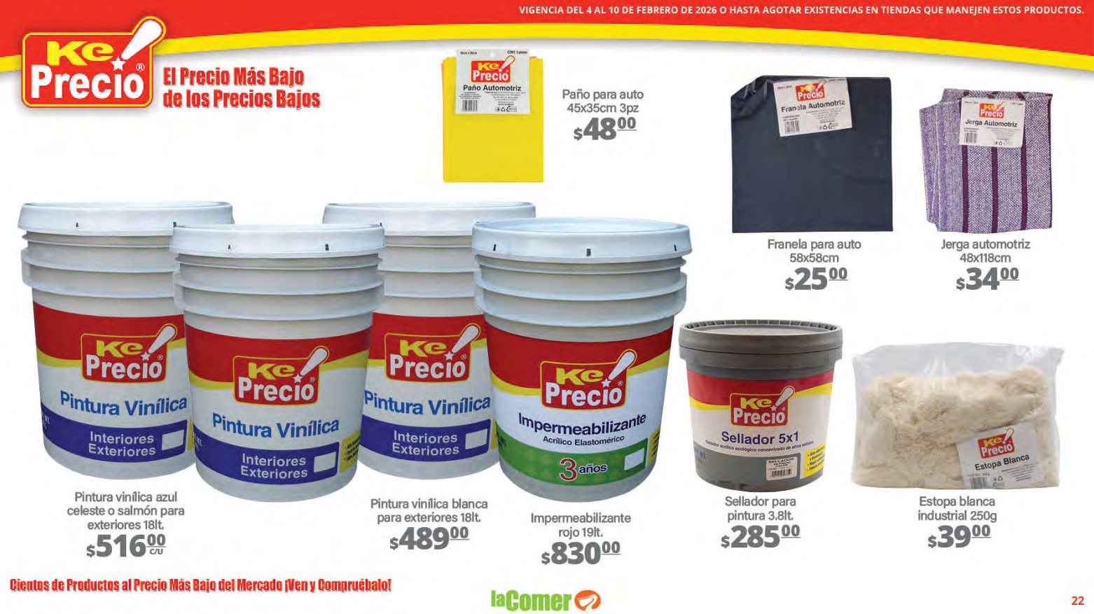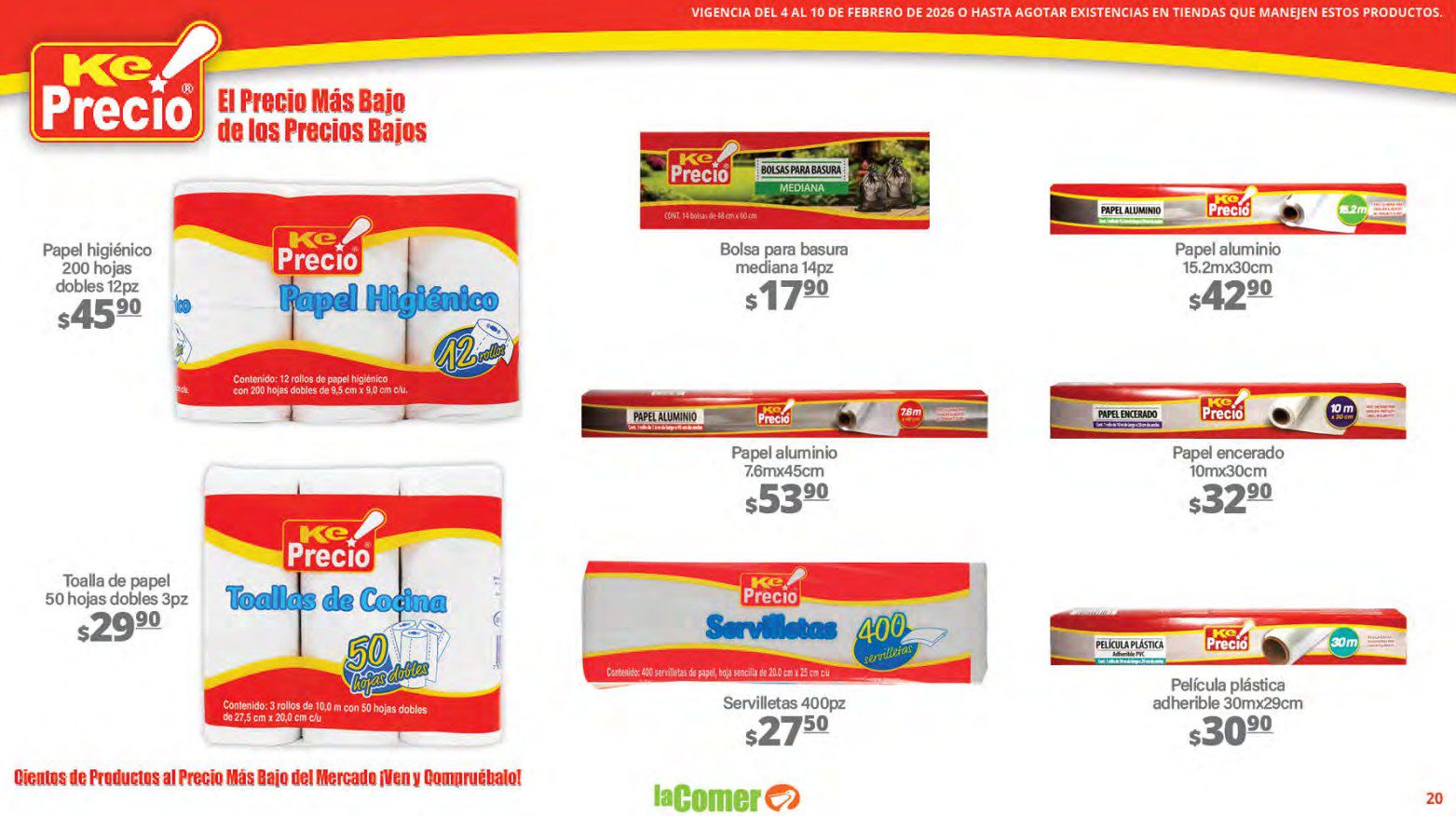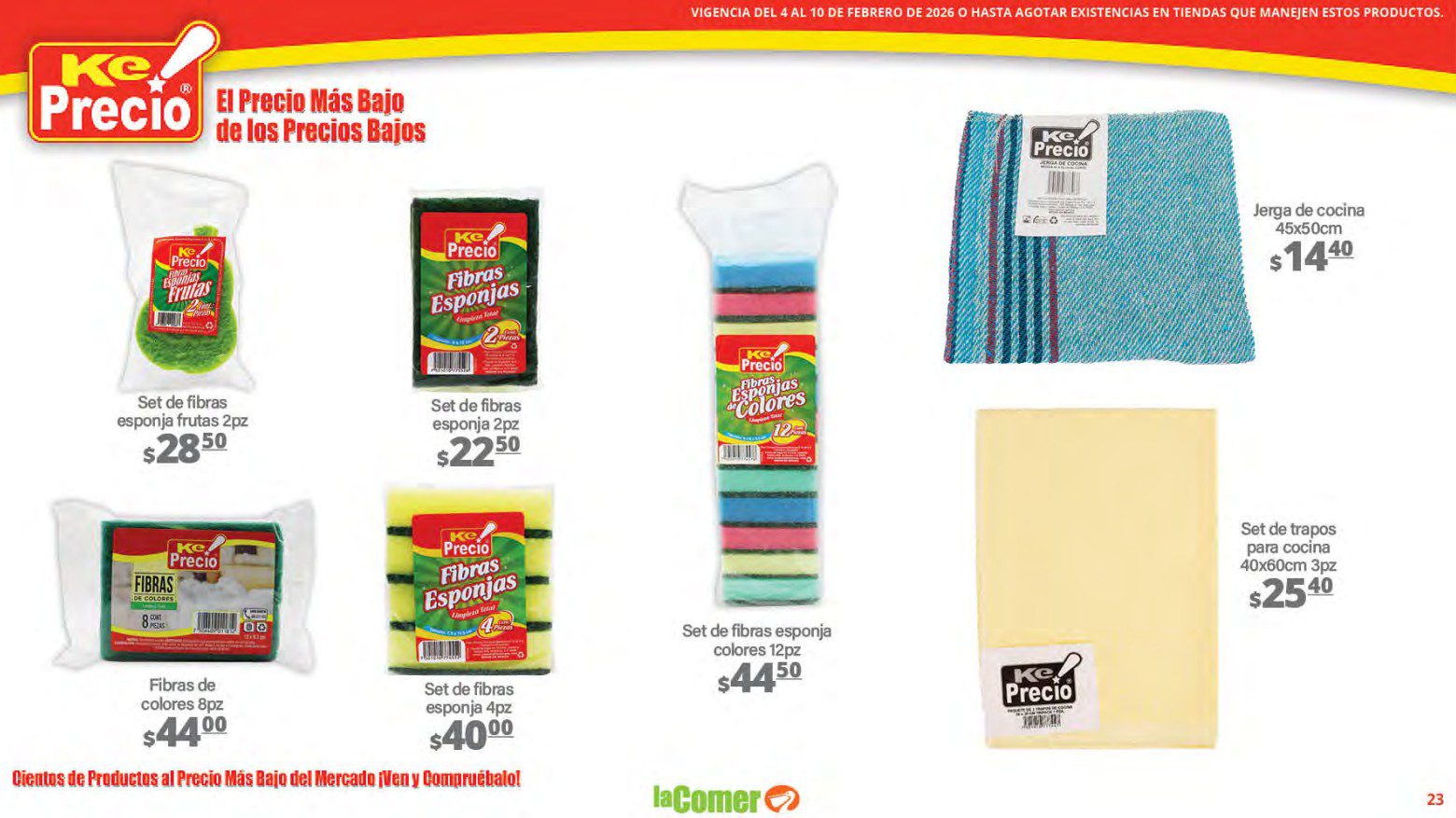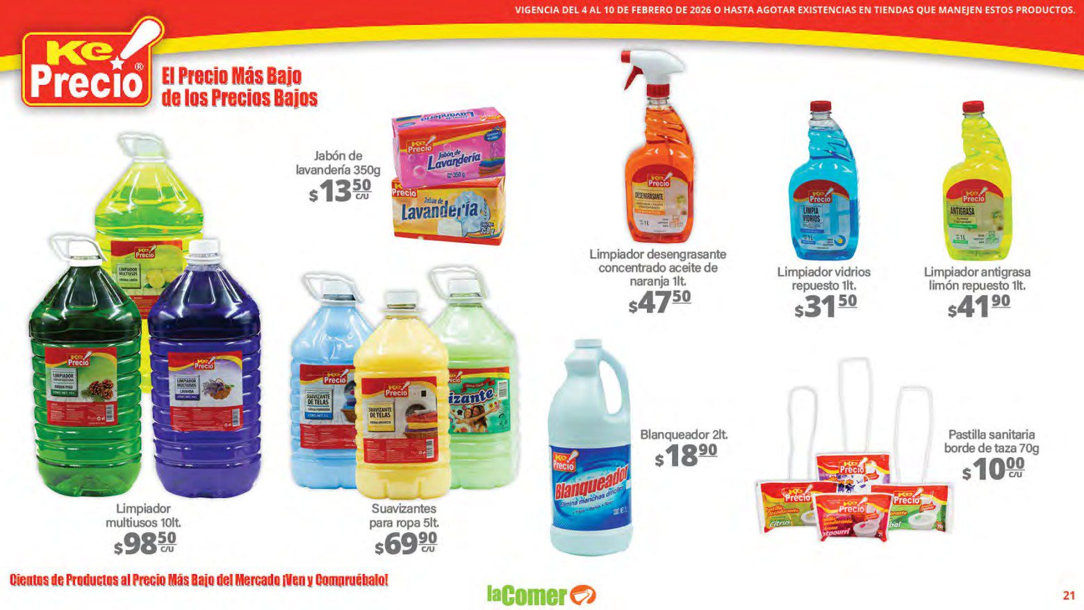 Te comparto el folleto Llegaron los Mejores Precios de La Comer, que contiene sus ofertas válidas del 04 al 10 de febrero de 2026 o hasta agotar existencias y en el que encontrarás que, en la compra de 1 te llevas el Segundo a Mitad de precio, Ofertas especiales en la compra de importes determinados, Bonificaciones en tu Monedero Naranja en la compra de determinados importes, Precios especiales en productos seleccionados y Ofertas especiales en sus líneas de productos Ke! Precio; las ofertas son válidas en su tienda en línea: www.lacomer.com.mx/ y en sus sucursales físicas y este es su folleto: