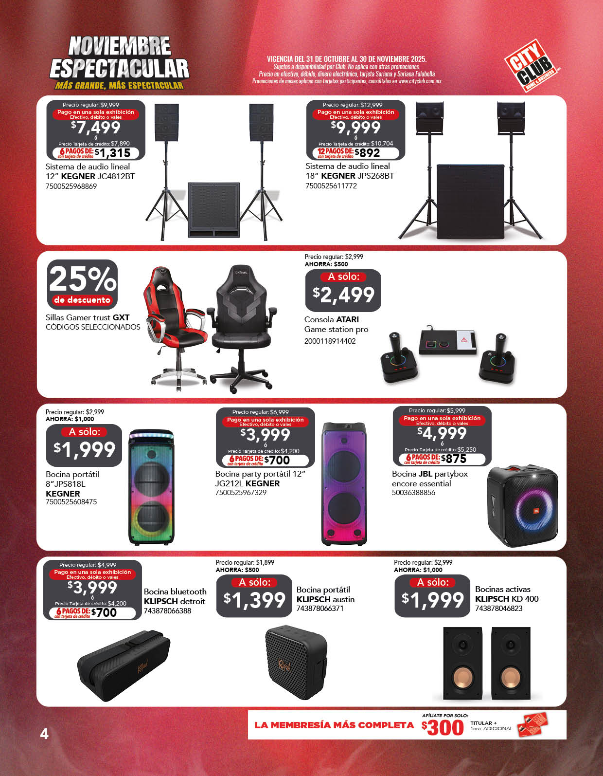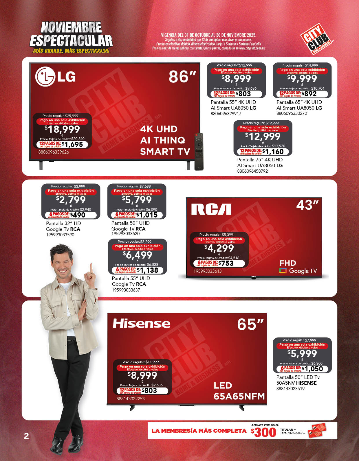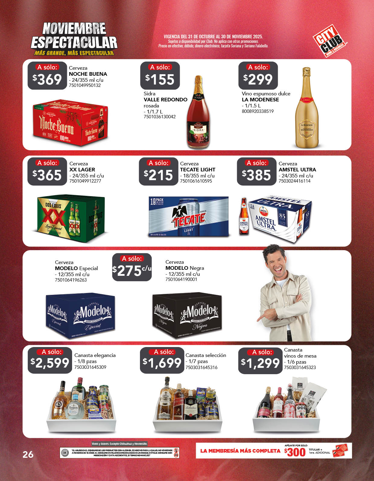 Los clubes de precios City Club publicaron su folleto Noviembre Espectacular, que contiene sus ofertas válidas del 31 de octubre al 30 de noviembre de 2025 y en el que encontrarás 2×1, 4×3, Ahorros en la compra de determinadas unidades, hasta un 50% de descuento y Precios especiales; las ofertas son válidas en su tienda en línea www.cityclub.com.mx y en sus sucursales físicas, aplican en mercancía seleccionada.
