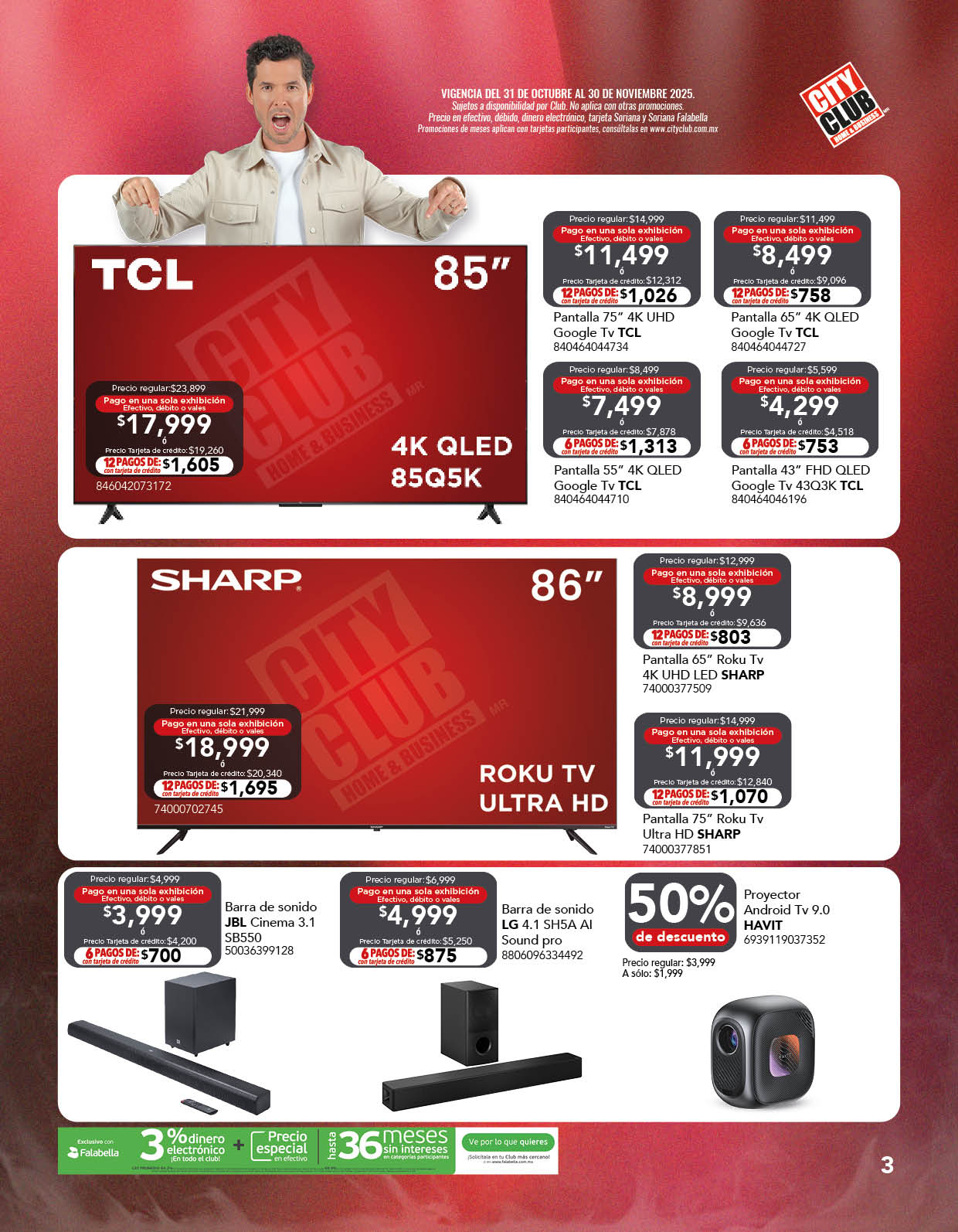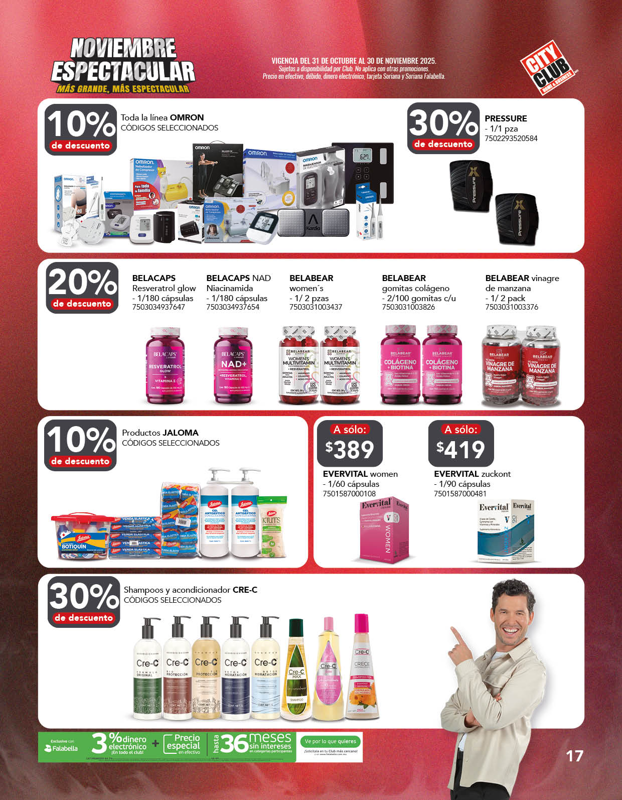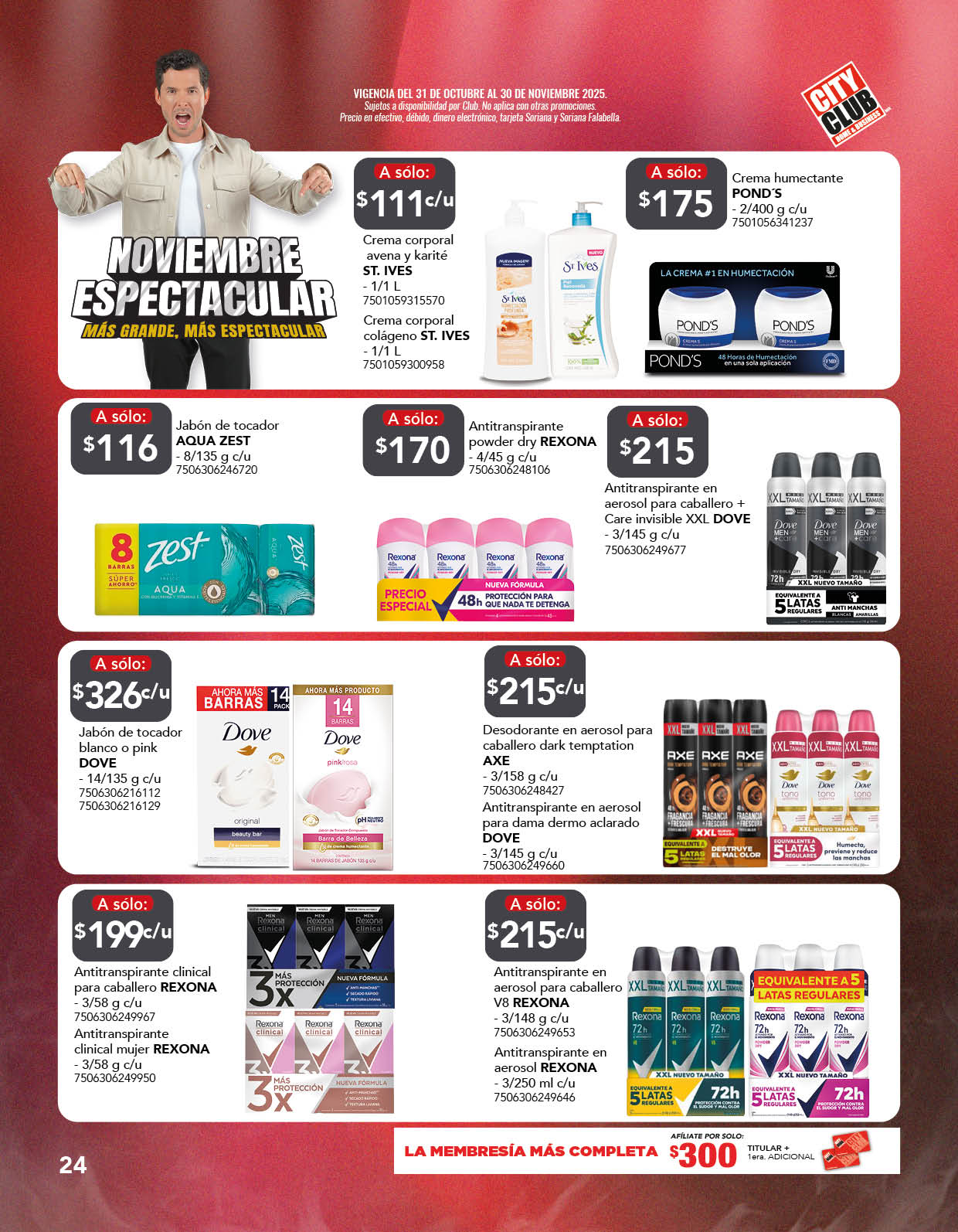Los clubes de precios City Club publicaron su folleto Noviembre Espectacular, que contiene sus ofertas válidas del 31 de octubre al 30 de noviembre de 2025 y en el que encontrarás 2×1, 4×3, Ahorros en la compra de determinadas unidades, hasta un 50% de descuento y Precios especiales; las ofertas son válidas en su tienda en línea www.cityclub.com.mx y en sus sucursales físicas, aplican en mercancía seleccionada.