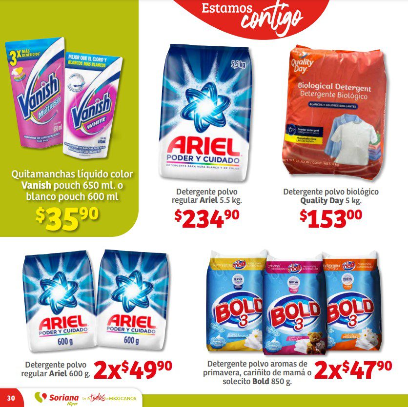Te comparto el folleto catorcenal Estamos Contigo, Preciazazaso, ¡Más Bajo Imposible! Y Canasta Aliada de Soriana Híper, que contiene sus ofertas válidas del 27 de octubre al 13 de noviembre de 2023 o agotar existencias, y en el que encontrarás 3×2, 4×3 (el producto GRATIS será el de igual o menor precio), Beneficios con tu Tarjeta Recompensas, en la compra de 1 te llevas el 2º con un 50% de descuento (en productos de igual o menor precio), Ahorros especiales en la compra de determinadas unidades, Pa’Quete Ahorres con Oroducto GRATIS en la compra de mercancía participante, hasta un 30% de descuento y Precios especiales; las ofertas son válidas en artículos seleccionados y aplican en su tienda en línea soriana.com y en sus sucursales físicas participantes.