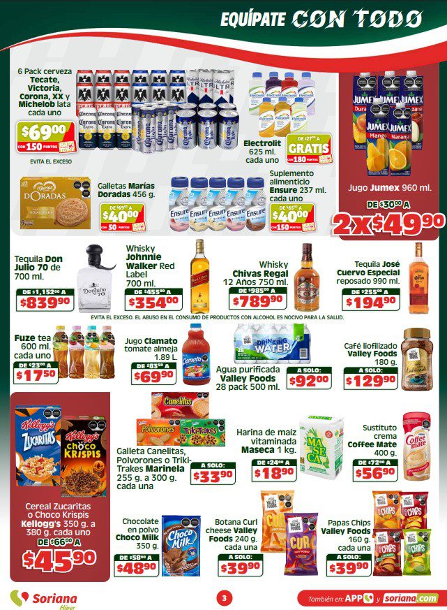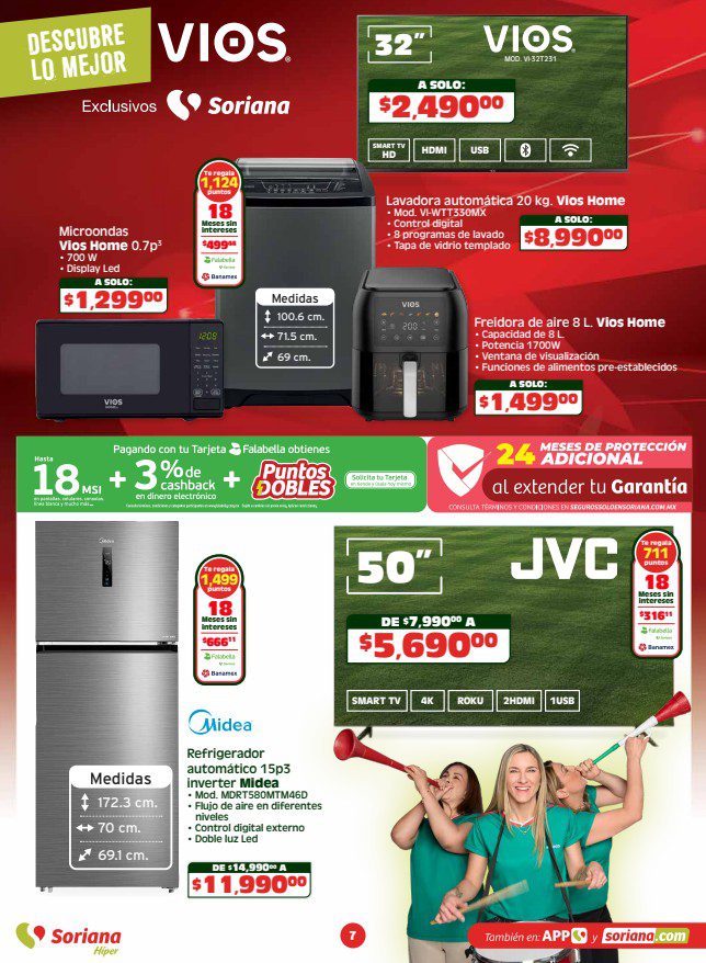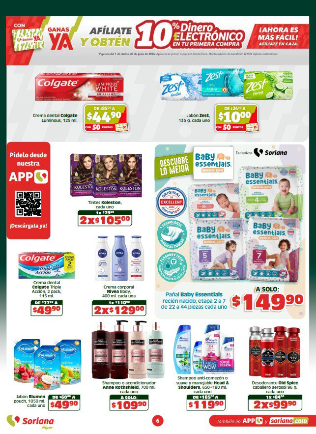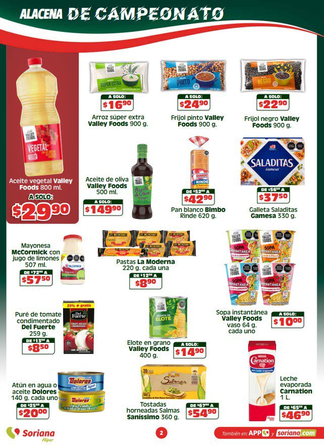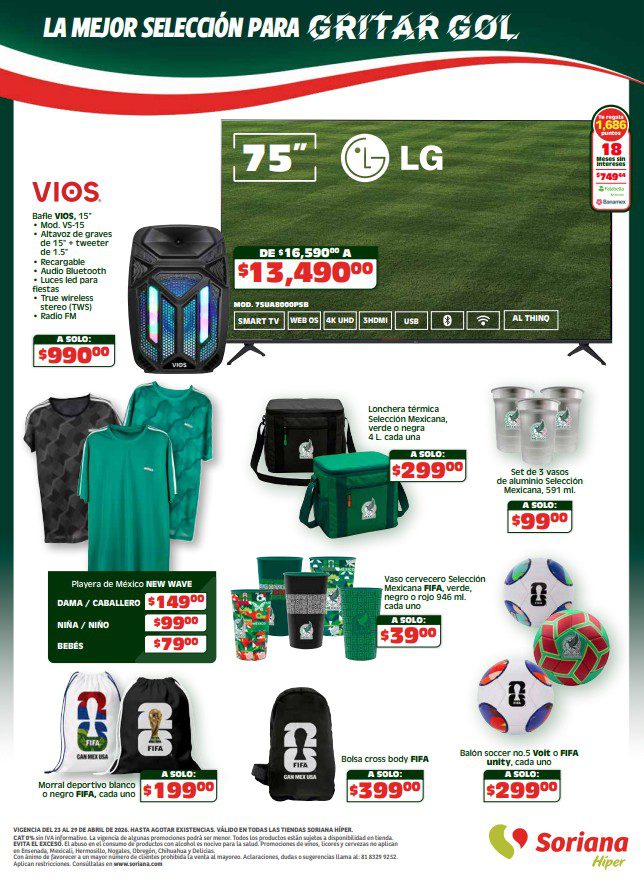 Te comparto el folleto Semanal Apoyamos con Todo de Soriana Híper, que contiene sus ofertas válidas del 23 al 29 de abril de 2026 o agotar existencias, y en el que encontrarás Beneficios con tu Tarjeta Soriana Ya (como Productos Gratis con una determinada cantidad de Puntos), en la compra de 1 te llevas el 2º con un 50% de descuento (en productos de igual o menor precio), Ahorros especiales en la compra de determinadas unidades, Precios especiales y hasta 18 Meses sin intereses; las ofertas son válidas en artículos seleccionados y aplican en su tienda en línea soriana.com y en sus sucursales físicas.
