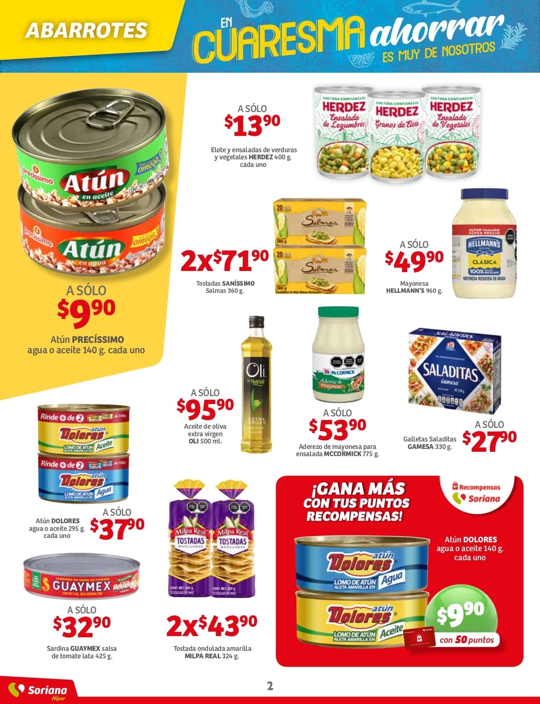 Te comparto el folleto “En Cuaresma Ahorrar es muy de Nosotros” de Soriana Híper, que contiene sus ofertas válidas del 15 al 30 de marzo de 2022 o agotar existencias, y en el que encontrarás 3×2, 4×3, Ahorros especiales utilizando determinada cantidad de Puntos Recompensa, en la compra de 1 te llevas el 2º con un 40% ó un 50% de descuento (en productos de igual o menor precio), Producto GRATIS en la compra de mercancía participante, hasta un 30% de descuento y Precios especiales, además de hasta un 70% de descuento en su Liquidación de Juguetes y Muebles de Casa y Jardín; las ofertas son válidas en artículos seleccionados y aplican en sus sucursales físicas participantes.