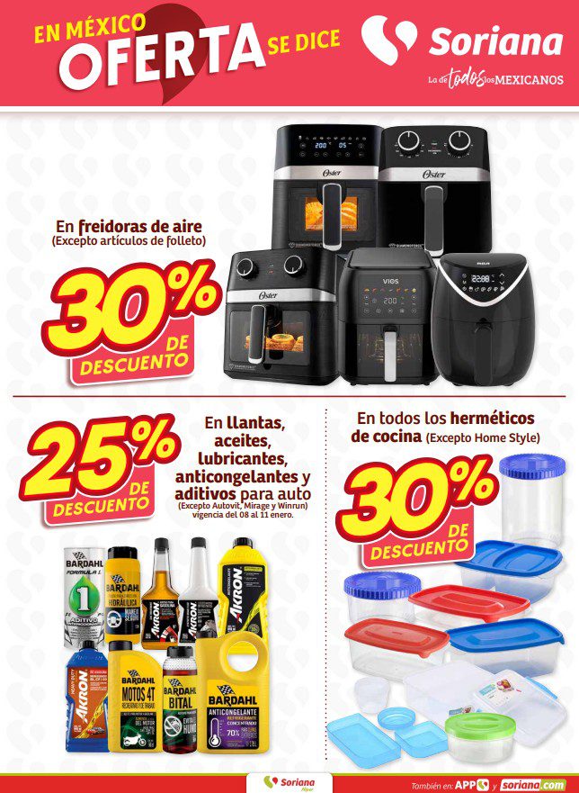 Soriana Híper dio a conocer su folleto de Fin de semana: En México Oferta se dice Soriana, que contiene sus ofertas válidas del 08 al 12 de enero de 2026, hasta agotar existencias, entre las que encontrarás un 3×2, 4×3, 8×6 (el producto GRATIS será el de igual o menor precio), el 2º producto con un 50% de descuento (en artículos de igual o menor precio), hasta un 70% de descuento, Precios especiales, Beneficios con tu Tarjeta Soriana Ya, hasta 18 Meses sin intereses y en sus Remates Únicos, hasta un 90% de descuento (en códigos seleccionados de Abarrotes, Cuidado personal, Detergentes, Farmacia, Ropa, Tecnología, Vinos, Licores y mucho más); las ofertas son válidas en mercancía seleccionada y aplican en sucursales físicas y en su tienda en línea soriana.com. Estas son solo algunas de sus ofertas (al final te dejo el folleto completo):