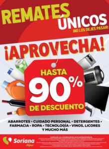 - Hasta un 90% de descuento en códigos seleccionados de Abarrotes, Cuidado personal, Detergentes, Farmacia, Ropa, Tecnología, Vinos, Licores y mucho más
