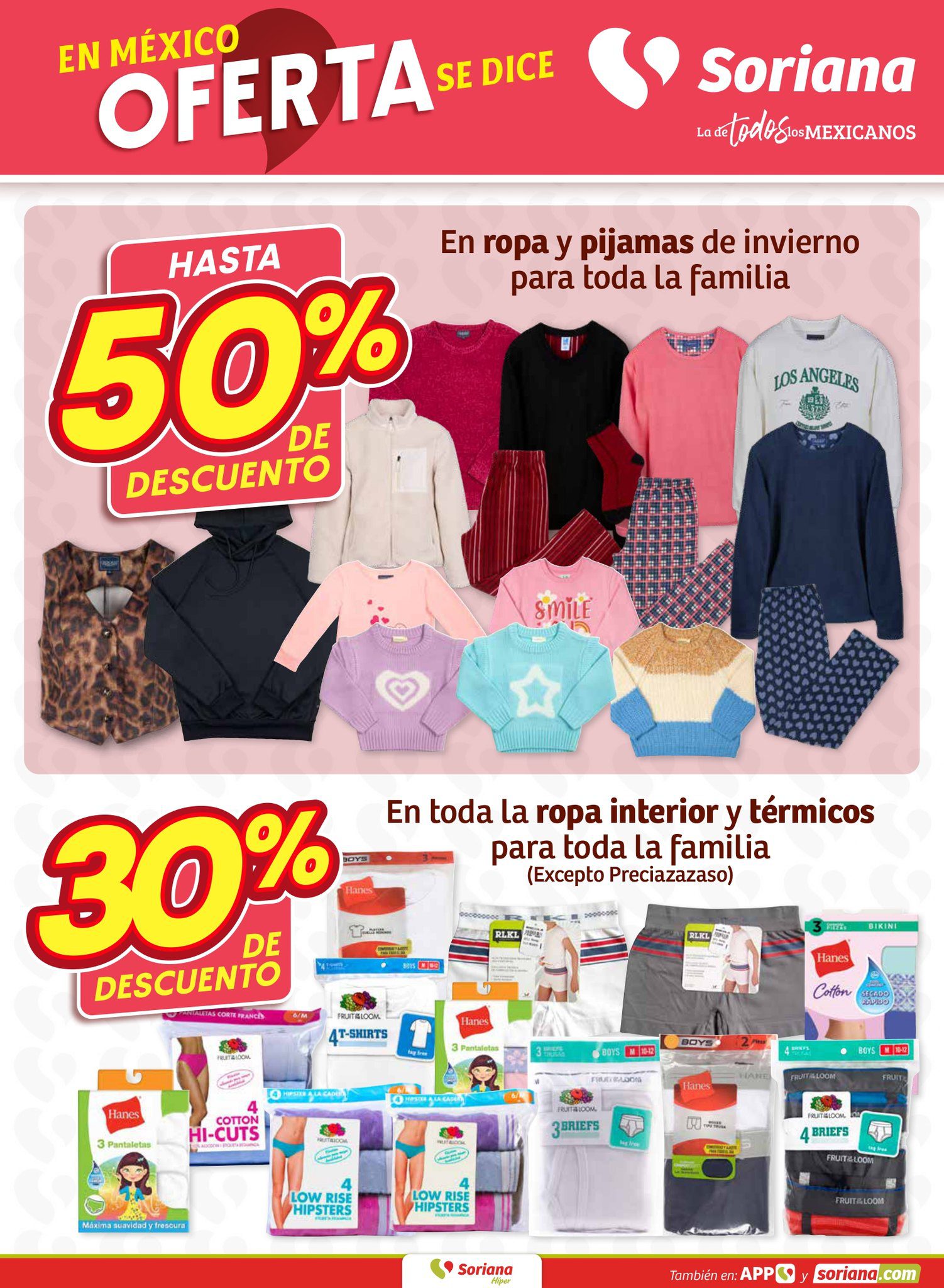 • Toda la Ropa Interior y Térmicos para toda la Familia (excepto Preciazazaso)