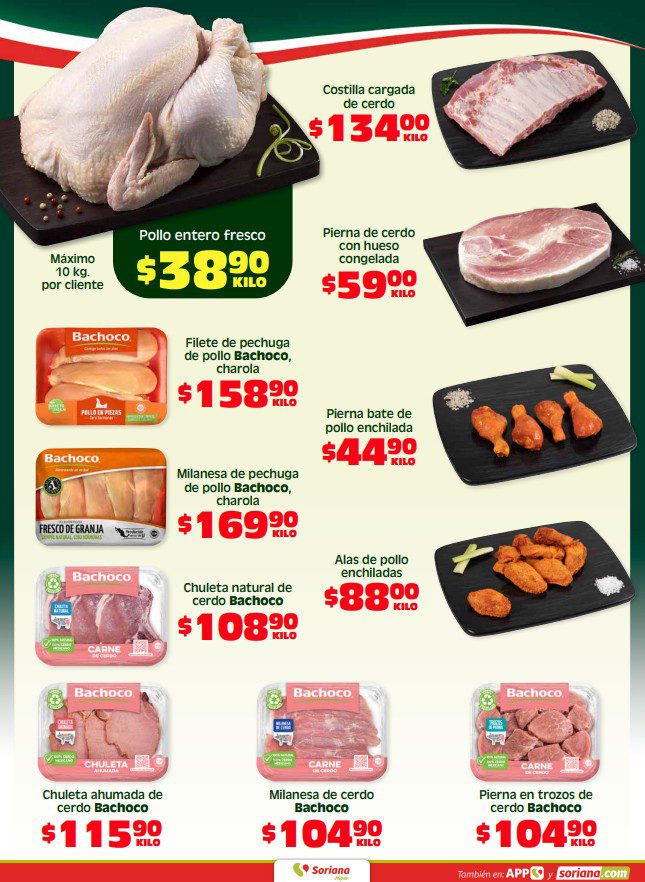 - Chuleta natural de Cerdo Bachoco a $108.90 el kilo