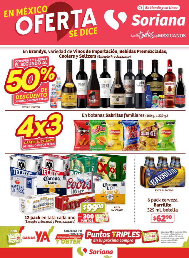 Soriana Híper dio a conocer su folleto de Fin de semana: En México Oferta se dice Soriana, que contiene sus ofertas válidas del 19 al 23 de febrero de 2026, hasta agotar existencias, entre las que encontrarás un 3×2, 4×3 (el producto GRATIS será el de igual o menor precio), el 2º producto con un 50% de descuento (en artículos de igual o menor precio), Cupones de descuento (exclusivos en línea), hasta un 70% de descuento, Precios especiales, Beneficios con tu Tarjeta Soriana Ya y hasta 18 Meses sin intereses; las ofertas son válidas en mercancía seleccionada y aplican en sucursales físicas y en su tienda en línea soriana.com. Estas son solo algunas de sus ofertas (al final te dejo el folleto completo):