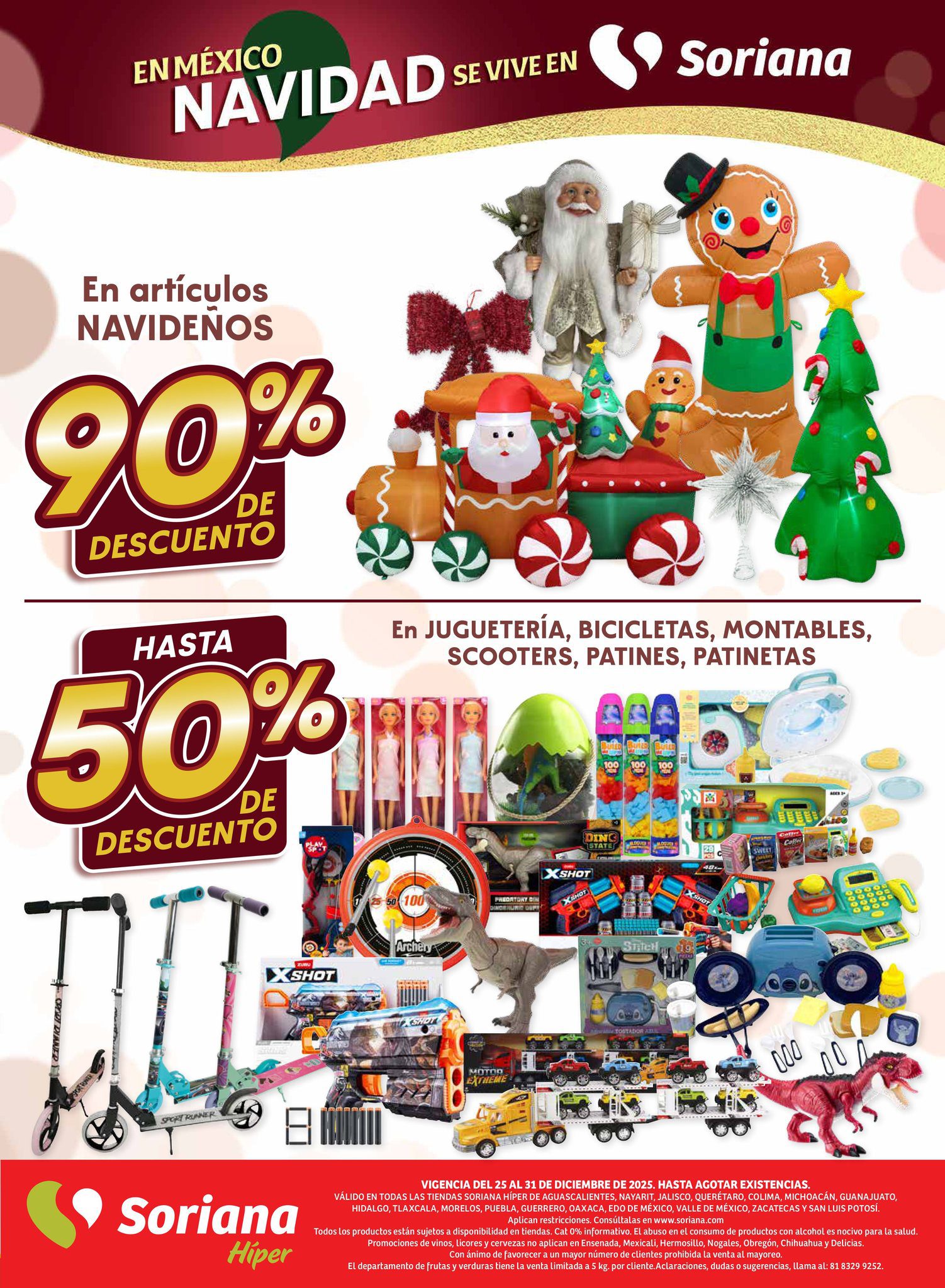 Soriana Híper dio a conocer su folleto de Fin de semana: En México Navidad se Vive en Soriana, que contiene sus ofertas válidas del 25 al 31 de diciembre de 2025, hasta agotar existencias, entre las que encontrarás un 4×3 (el producto GRATIS será el de igual o menor precio), el 2º producto con un 50% de descuento (en artículos de igual o menor precio), hasta un 90% de descuento, Precios especiales, Beneficios con tu Tarjeta Soriana Ya y hasta 18 Meses sin intereses; las ofertas son válidas en mercancía seleccionada y aplican en sucursales físicas y en su tienda en línea soriana.com. Estas son solo algunas de sus ofertas (al final te dejo el folleto completo):
