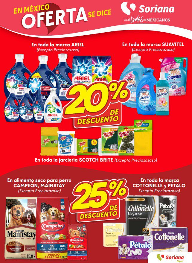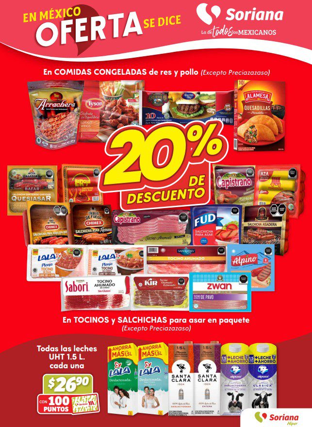 Soriana Híper dio a conocer su folleto de Fin de semana: En México Oferta se dice Soriana, que contiene sus ofertas válidas del 02 al 06 de octubre de 2025, hasta agotar existencias, entre las que encontrarás un 3×2 (el producto GRATIS será el de igual o menor precio), el 2º producto con un 50% de descuento (en artículos de igual o menor precio), hasta un 30% de descuento, Precios especiales, Beneficios con tu Tarjeta Soriana Ya, un 10% en Dinero electrónico, hasta 18 Meses sin intereses y en su Gran Liquidación, hasta un 70% de descuento (en códigos seleccionados); las ofertas son válidas en mercancía seleccionada y aplican en sucursales físicas participantes y en su tienda en línea soriana.com. Estas son solo algunas de sus ofertas (al final te dejo el folleto completo):