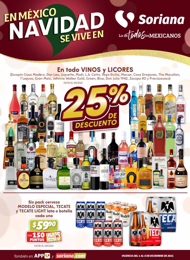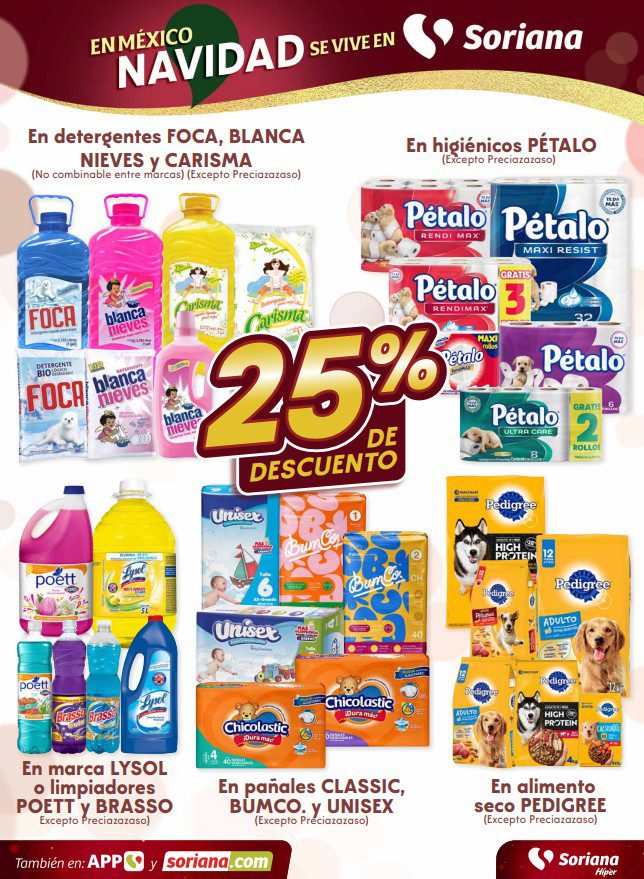 Soriana Híper dio a conocer su folleto de Fin de semana: En México Navidad se Vive en Soriana, que contiene sus ofertas válidas del 04 al 08 de diciembre de 2025, hasta agotar existencias, entre las que encontrarás un 3×2 (el producto GRATIS será el de igual o menor precio), el 2º producto con un 70% de descuento (en artículos de igual o menor precio), hasta un 70% de descuento, Precios especiales, Beneficios con tu Tarjeta Soriana Ya, un 10% en Dinero electrónico en Medicina de Prescripción médica y hasta 18 Meses sin intereses; las ofertas son válidas en mercancía seleccionada y aplican en sucursales físicas y en su tienda en línea soriana.com. Estas son solo algunas de sus ofertas (al final te dejo el folleto completo):