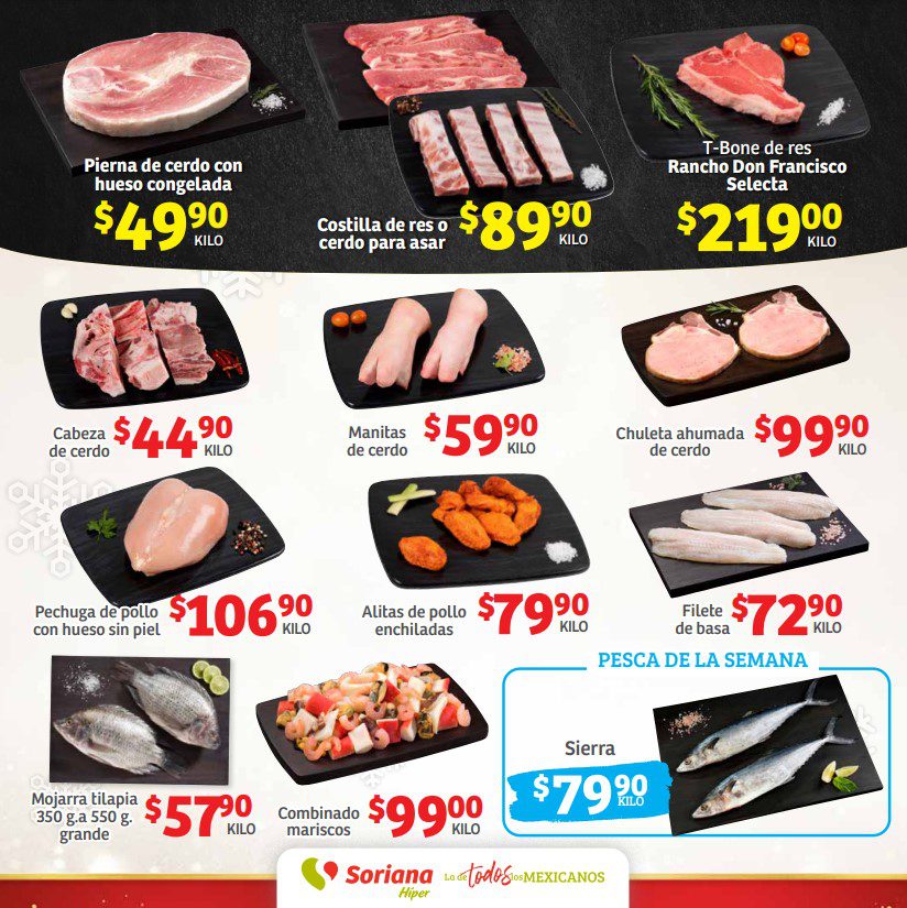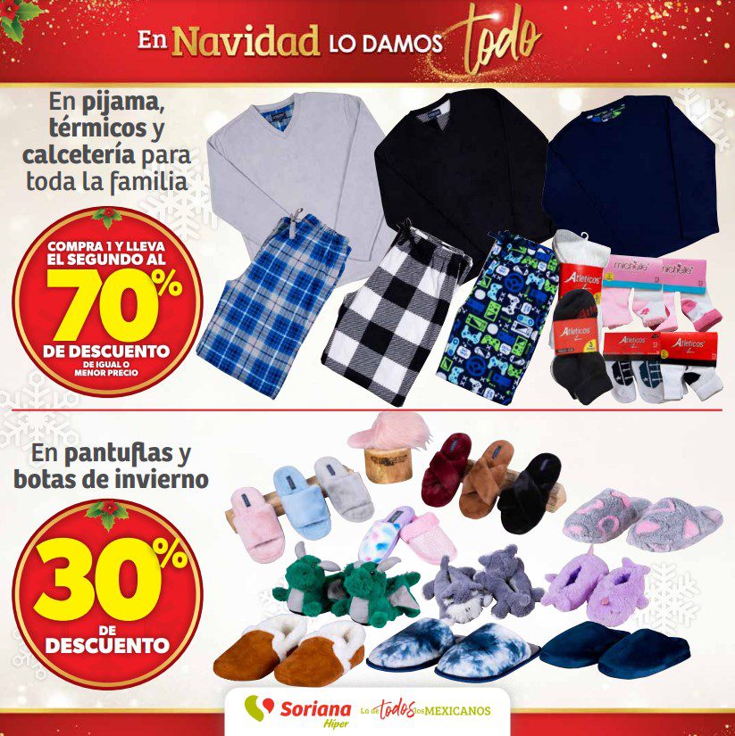 Soriana Híper dio a conocer su folleto de Fin de semana En Navidad lo Damos Todo, que contiene sus ofertas válidas del 08 al 11 de diciembre de 2023, entre las que encontrarás 4×3 (el producto GRATIS será el de igual o menor precio), el 2º producto con un 50% ó un 70% de descuento (en artículos de igual o menor precio), hasta un 50% de descuento, Precios especiales, Beneficios con tu Tarjeta Recompensas y hasta 18 Meses sin intereses; las ofertas son válidas en mercancía seleccionada y aplican en sucursales físicas y en su tienda en línea soriana.com. Sus ofertas en Frutas, Verduras y Carnes son estas (al final te dejo el folleto completo):