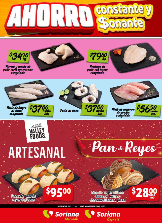 Acabo de ver las ofertas en Frutas, Verduras y Carnes del folleto de Media Semana Los Frescos del Mandado de las tiendas de autoservicio Soriana Mercado y Express que son válidas del 11 al 13 de noviembre de 2025; en el que encontrarás Precios especiales; la promoción es válida en sucursales participantes, aplican en artículos seleccionados y algunas de sus ofertas son estas (al final te dejo el folleto completo):