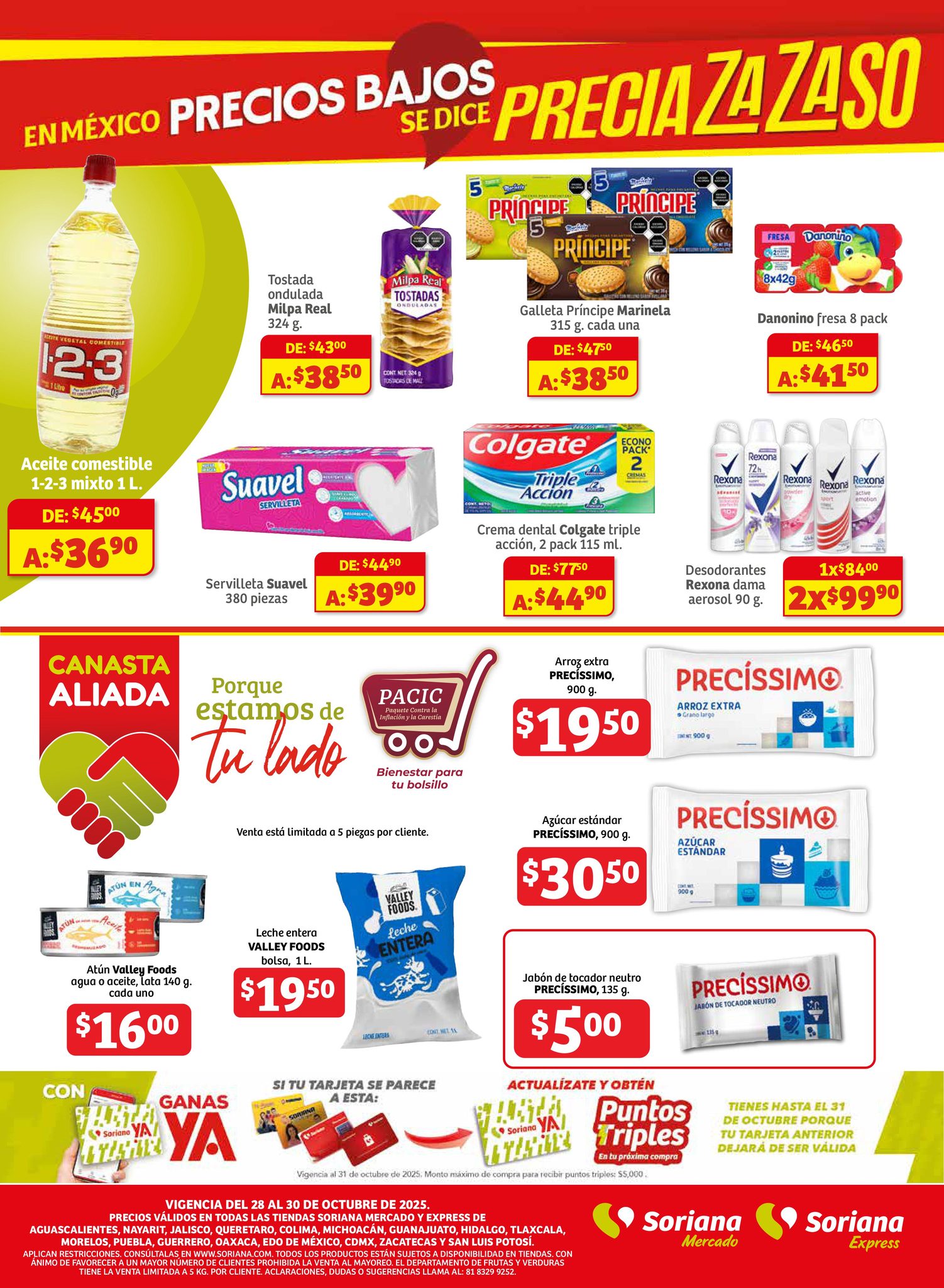 Acabo de ver las ofertas en Frutas, Verduras y Carnes del folleto de Media Semana Los Frescos del Mandado de las tiendas de autoservicio Soriana Mercado y Express que son válidas del 28 al 30 de octubre de 2025; en el que encontrarás Precios especiales; la promoción es válida en sucursales participantes, aplican en artículos seleccionados y algunas de sus ofertas son estas (al final te dejo el folleto completo):